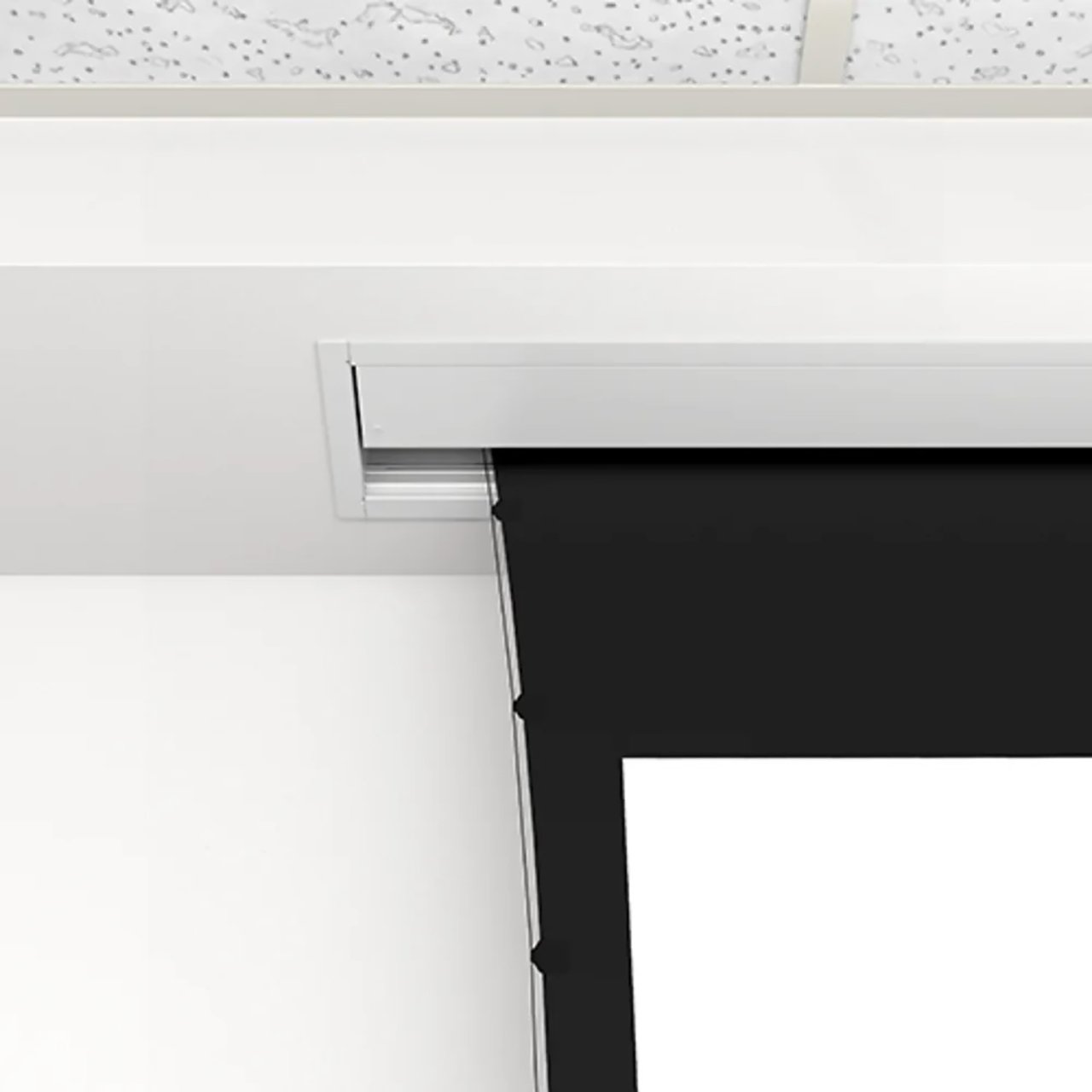 The Da-Lite 21806LS Tensioned Advantage ceiling recessed electric screen series is designed with ceiling trim in place, to conceal the rough opening eliminating the need to complete additional trim work once the screen is installed. Its two-stage installation option affords the screen case to be installed during the rough-in construction stage, and the screen surface assembly during the finishing stage. Sliding installation brackets allow mounting flexibility for easy attachment of the screen housing to the structure above the drop ceiling.