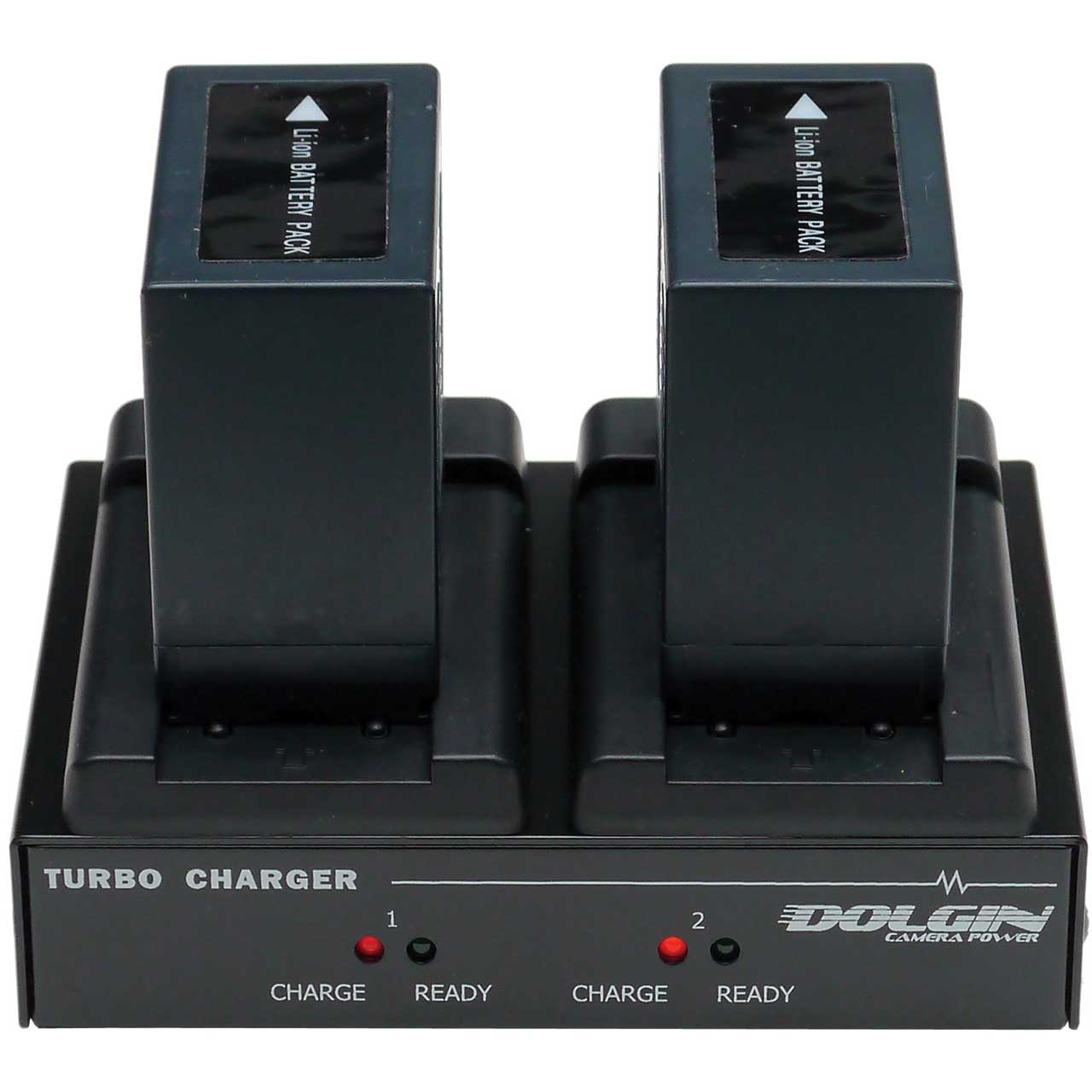 The Dolgin TC200-PAN two position battery charger accepts Panasonic AG-VBR (AG-AC30, UX180, UX90, EVA-1), CGR-D54 batteries. Compatible with Non-OEM batteries.