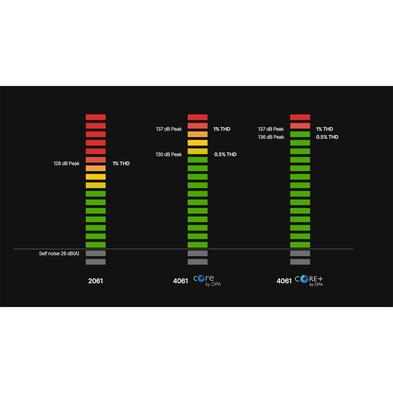 Microphones with CORE+ provide even more clarity across the entire dynamic range, from low to high sound pressure levels.