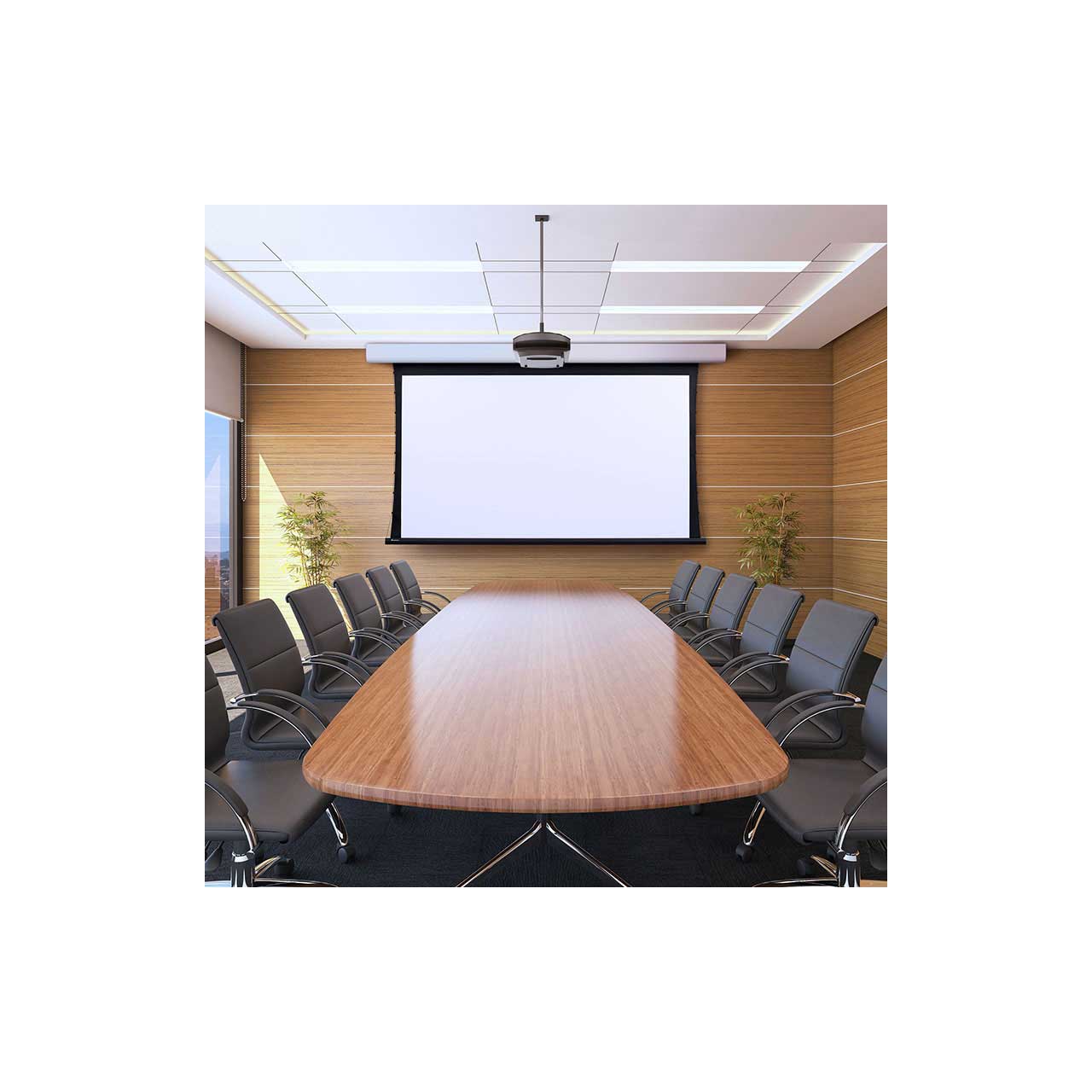 Designed for maximum flexibility, Draper 154103 AcumenV features an attractive below the ceiling projection screen engineered to meet the demands of heavy use and still look nice in today's interiors. A smooth, curved aluminum housing and white powder coated finish complement any room design. Floating wall brackets provide this wall- or ceiling-mounted electric screen quick and easy installation. A tab-tensioned screen provides a perfectly flat viewing surface with better image quality. RF welded tabs create a more durable seal that eliminates separation and stickiness. Fascia is easily removable if maintenance is required. A wide variety of motor and control options including quiet and low voltage are available.