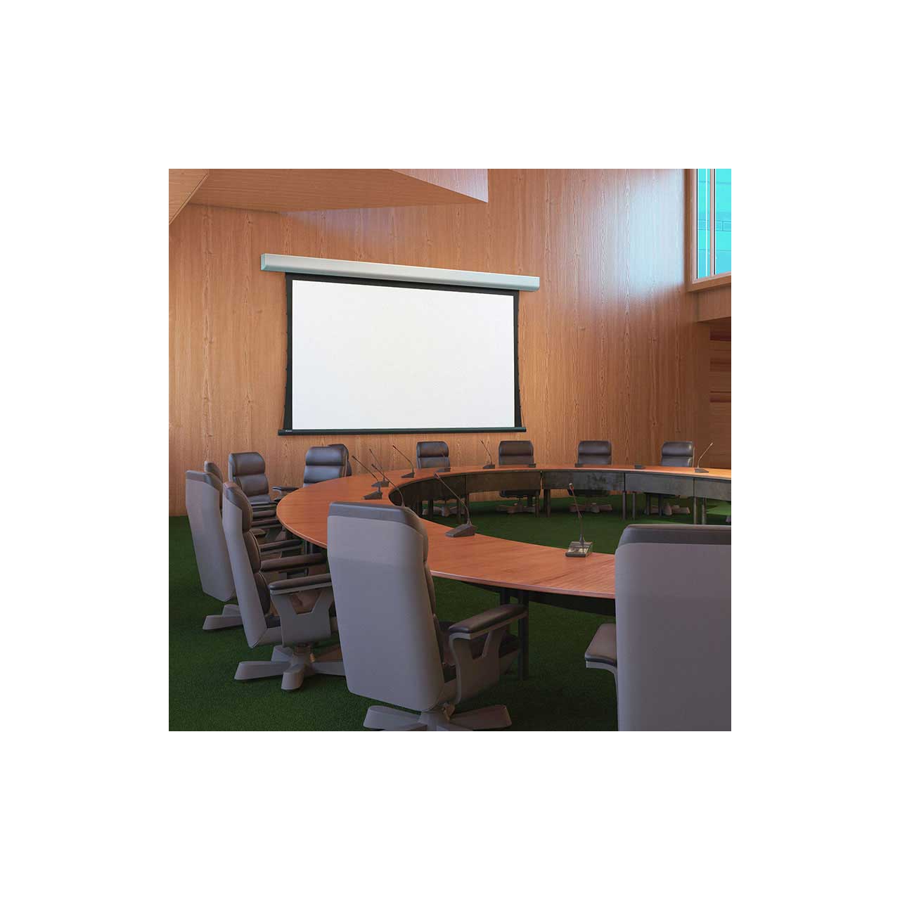 The Draper Acumen Recharge V is a wireless, rechargeable, battery operated electric projection screen. Designed for maximum flexibility, the motorized Draper Acumen Recharge V is powered by a rechargeable wireless battery. It installs like a manual screen with no wiring required for power and control, no electrician needed! All controls are wireless and you can add an optional hub to allow you to control the screen with a mobile app, Google Home, or Alexa. Each charge lasts approximately 500 cycles. Created to provide a fast, low-cost install the screen is engineered to meet the demands of heavy use and still look nice in today's interiors. A smooth, curved aluminum housing and white powder coated finish complement any room design. Floating wall brackets provide this free-hanging, wall- or ceiling-mounted projection screen quick and easy installation. Fascia is easily removable if maintenance is required. Wireless control options include phone app, Google, or Alexa.