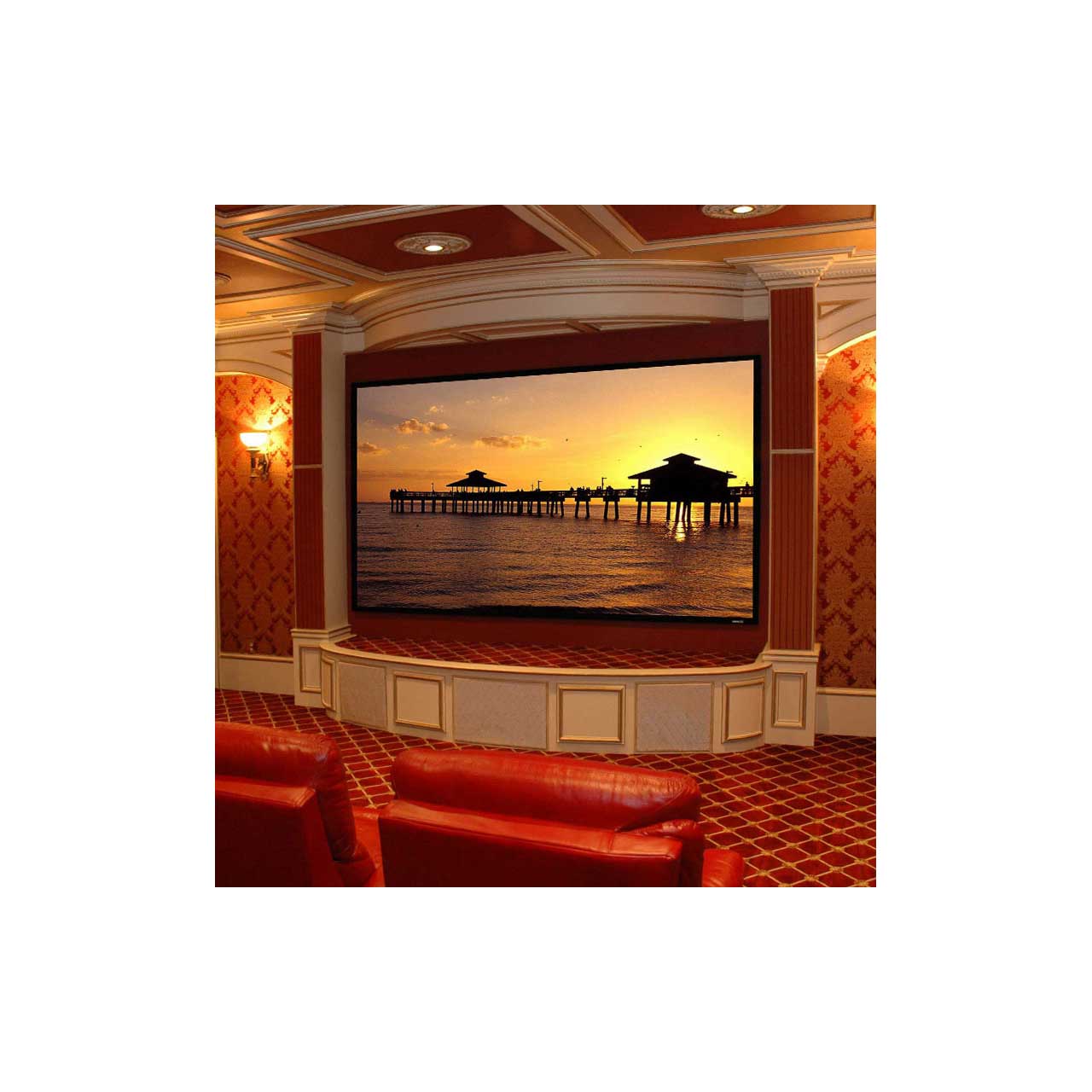 • Now available in 16:10 and 15:9 laptop presentation formats Viewing surface is flat and that means perfect picture quality. The Clarion's aluminum frame forms an attractive 2" border, for a clean, theatre-like appearance. Switch instantly between two projection formats with the optional Eclipse Masking System. The fabric attaches to the frame without snaps or tools, forming a perfectly smooth viewing surface. Z-Clip wall mounting brackets included to simplify installation. Standard black frame may be covered with velvety black Vel-Tex, which virtually eliminates all reflections on the frame. Depending on surface, available in sizes through 10' x 10' or 120" x 120" or 15' NTSC. Custom sizes available. Warranted for one year against defects in materials and workmanship.