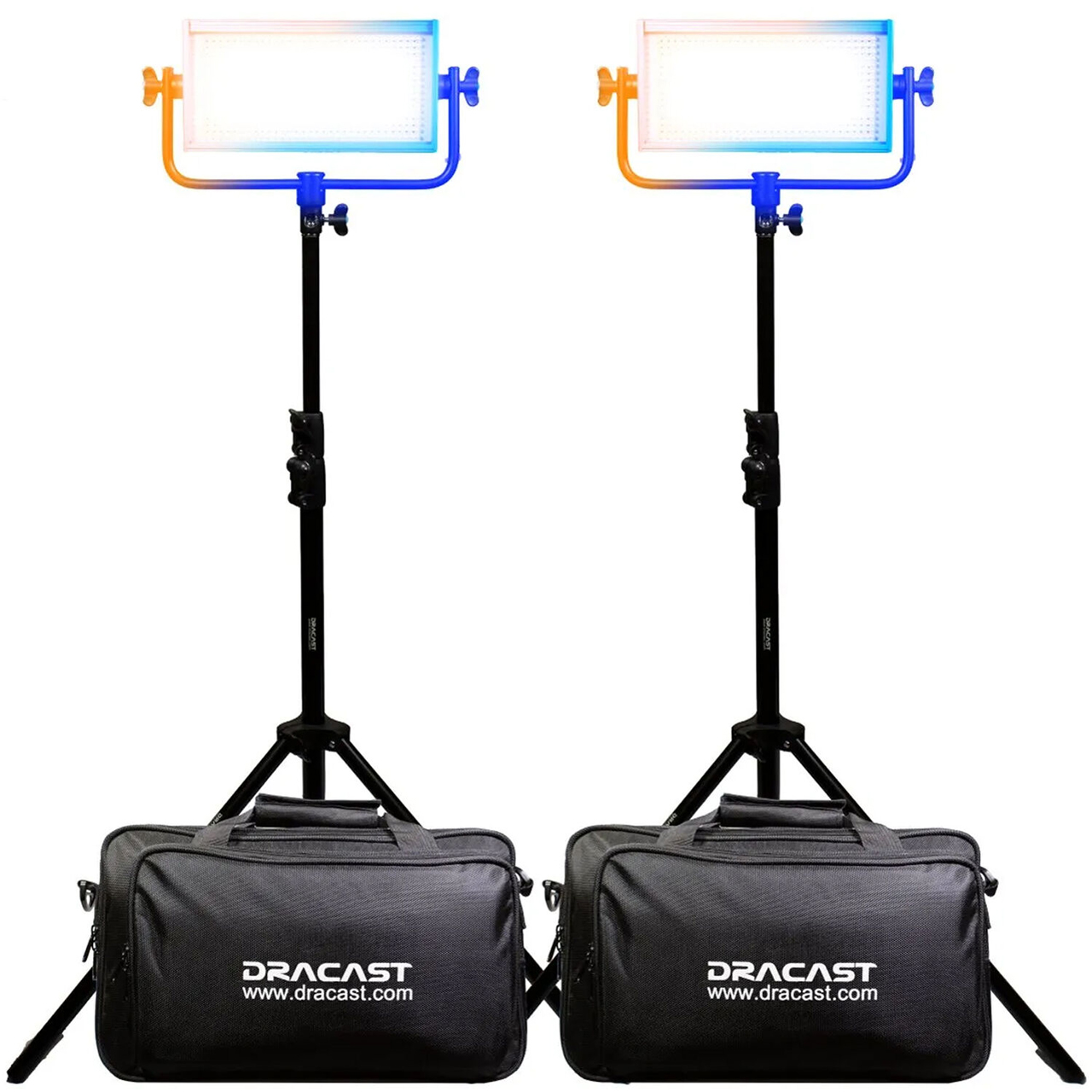 The Dracast DRPL500BCV2KQ Plus Series has been a cornerstone of the Dracast catalog for many years. Uncompromising build quality, high light output, and compact design has made the Dracast Plus Series an instrument of choice for professionals in the broadcast and film industries. This kit includes two (2) Plus Series 500 LED panels in bi-color 3200K - 5600K variable color temperature. Also included with each panel is A/C power adapter, nylon padded travel case, and a Dracast DRDLS805 light stand. At just 4.0lbs, the LED500 Plus Series Bi-Color light panel is an ideal choice for location work, interviews, and small sets where color accuracy, control, and high-CRI light output are of major importance. Variable color temperature from 3200K - 5600K means that you can quickly match the prevailing ambient or artificial light balance with a simple turn of a knob on the back of the panel.Dimming is equally convenient via the large manual control knob that adjusts the light intensity from 0% - 100%, with negligible color shift. The durable anodized aluminum frame is supported by an oversized, U-shaped yoke with locking knobs on each side and a standard 5/8" (baby pin) receiver. LED500 Plus Series Bi-Color LED Light from Dracast adds a digital display for adjusting output as well as Cat5 DMX input and output for linking and comes with both Gold mount and V-mount battery plates.