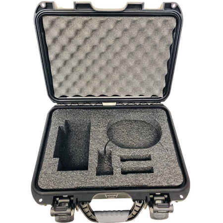 The DSan PC-CASE case for the PerfectCue is an air-tight plastic carrying/storage case made with molded foam inserts with pre-cut pockets to contain external power supplies, extra transmitters and USB cables.
