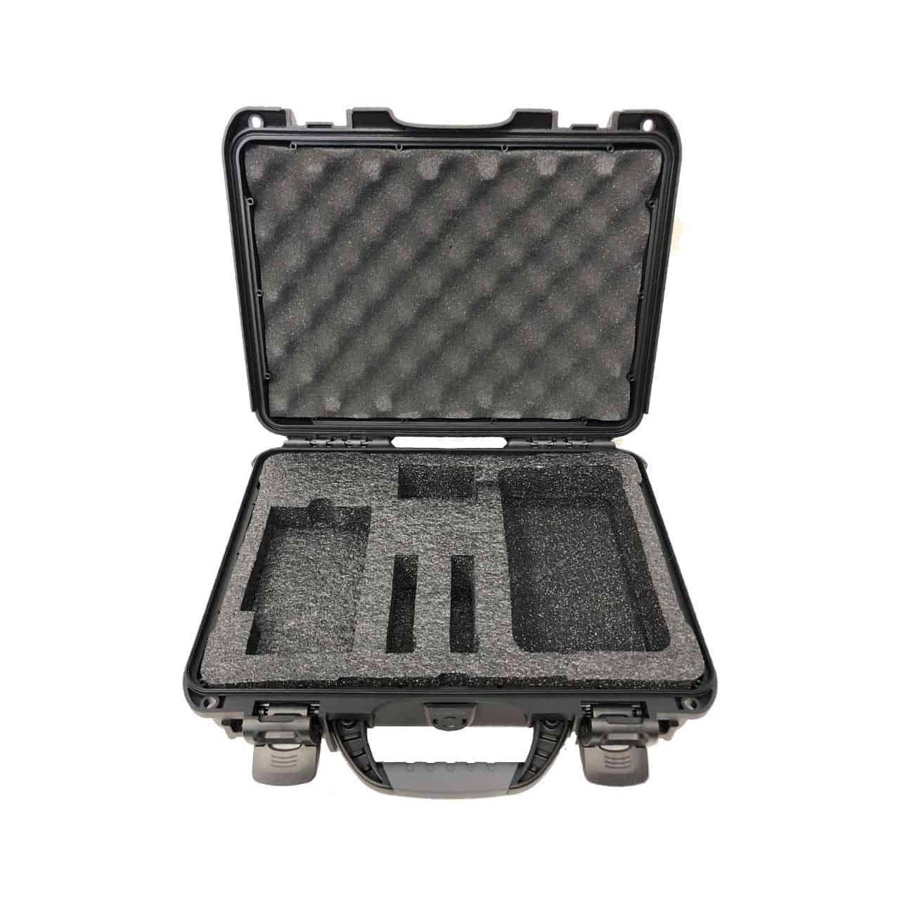The DSan PC-MINI-CASE case for the PerfectCue Mini is a hard plastic carrying/storage case made with molded foam inserts with pre-cut pockets to contain external power supplies, extra transmitters and USB cables.