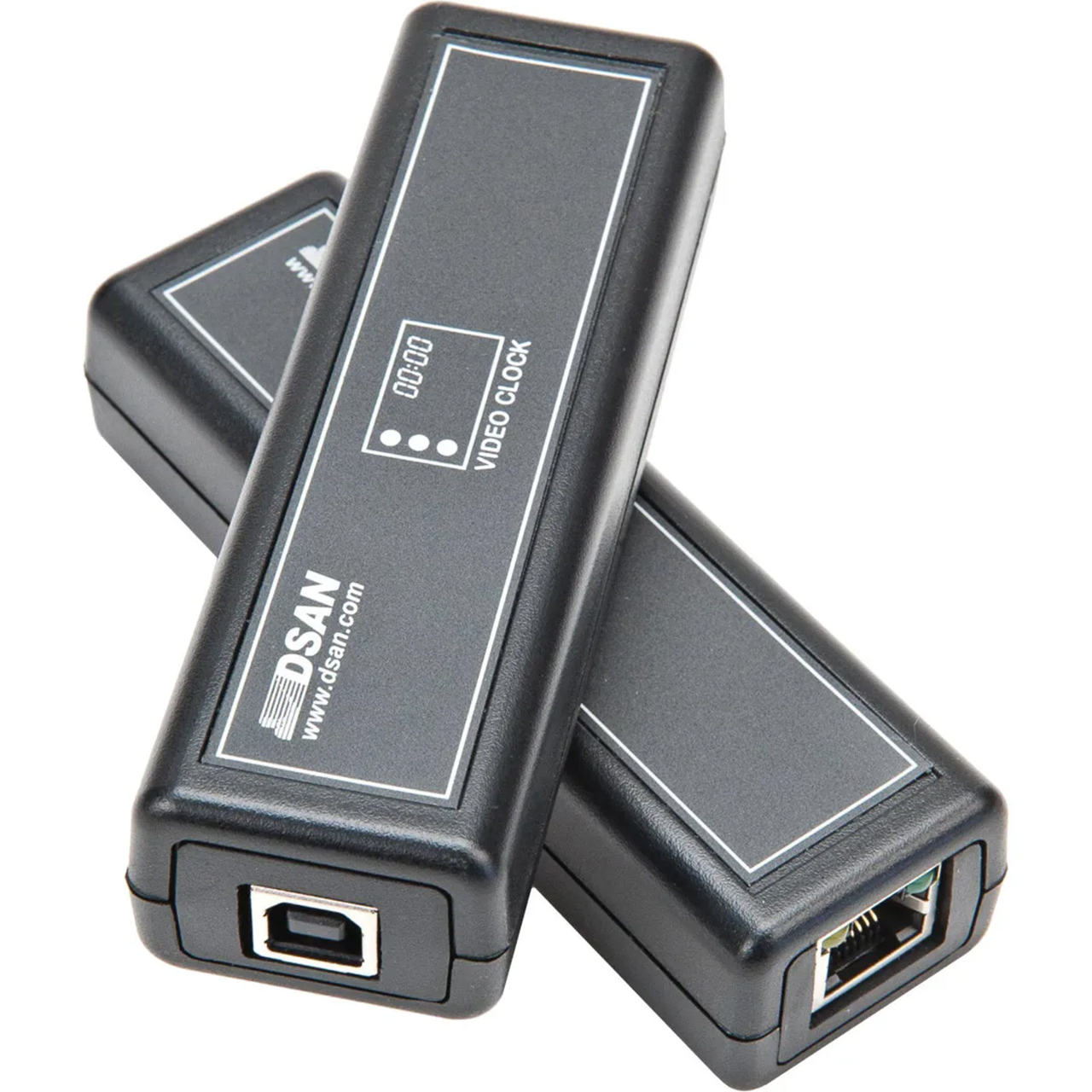 The DSan VC-2000-2 is a Cat-5-USB dongle that passes serial data from any DSan timer or cuelight product to companion software running on a Windows PC. The software can also process device data received from a network source.