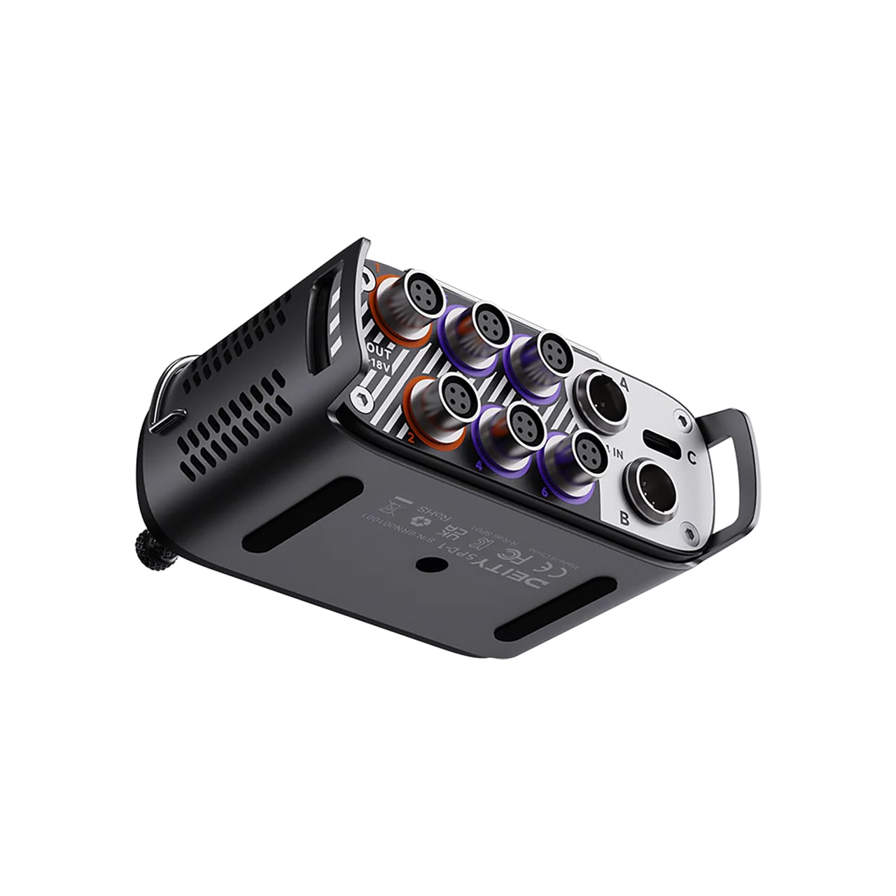 The SPD-1 supports both smart and non-smart batteries with its triple DC inputs and hot-swappable functionality. When using a non-smart 14.4V or USB-C battery, the SPD-1 will display incoming voltage. The screen on the SPD-1 adapts its displayed data to the type of power you supply. The SPD-1 is compatible with batteries from Audio Root, Inspire Energy, Remote Audio HiQ, RRC, Sound Device Smartbattery, and the Deity SPD-T4BATT.