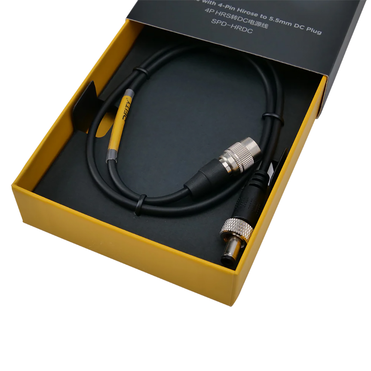 Introducing the SPD-HRDC, a 4-Pin Push-Power to 5.5mm Locking DC barrel jack from Deity Microphones. This innovative product is designed to work seamlessly with Locking DC-powered devices found in an audio bag, providing a reliable and secure power connection for your audio equipment.