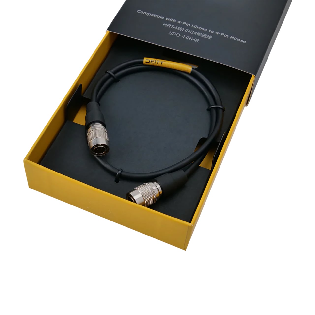 The Deity Microphones SPD-HRHR is a 4-Pin Push-Power (compatible with Hirose 4-Pin) to 4-Pin Push-Power connector. The SPD-HRHR is meant to be used with Hirose-compatible powered devices.