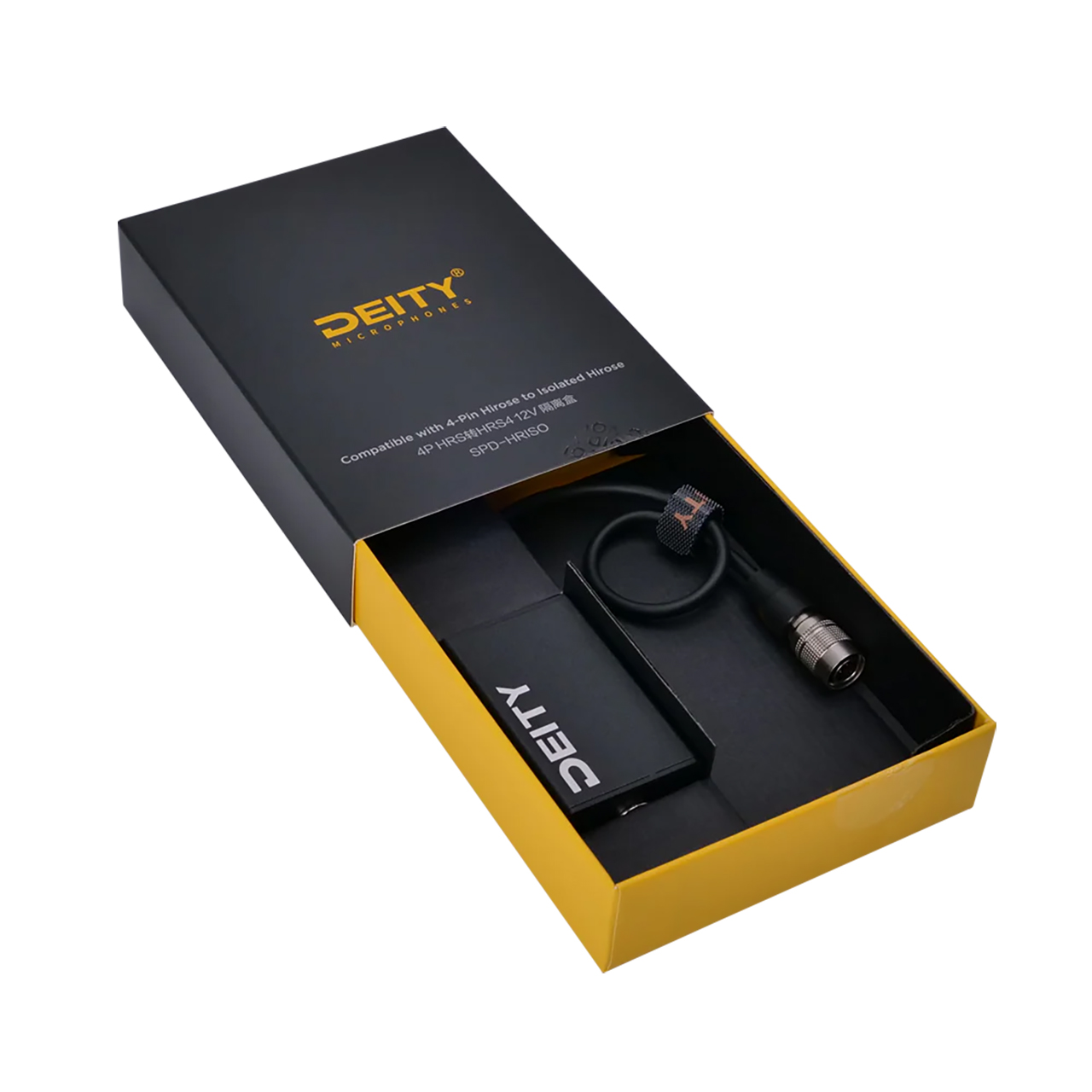 Introducing the SPD-HRISO, an inline power isolator from Deity Microphones. This innovative product is designed to work seamlessly with Hirose 4-Pin port-compatible powered devices, providing a ground-isolated power connection to help remove or reduce ground hum, hiss or whine in your audio equipment.