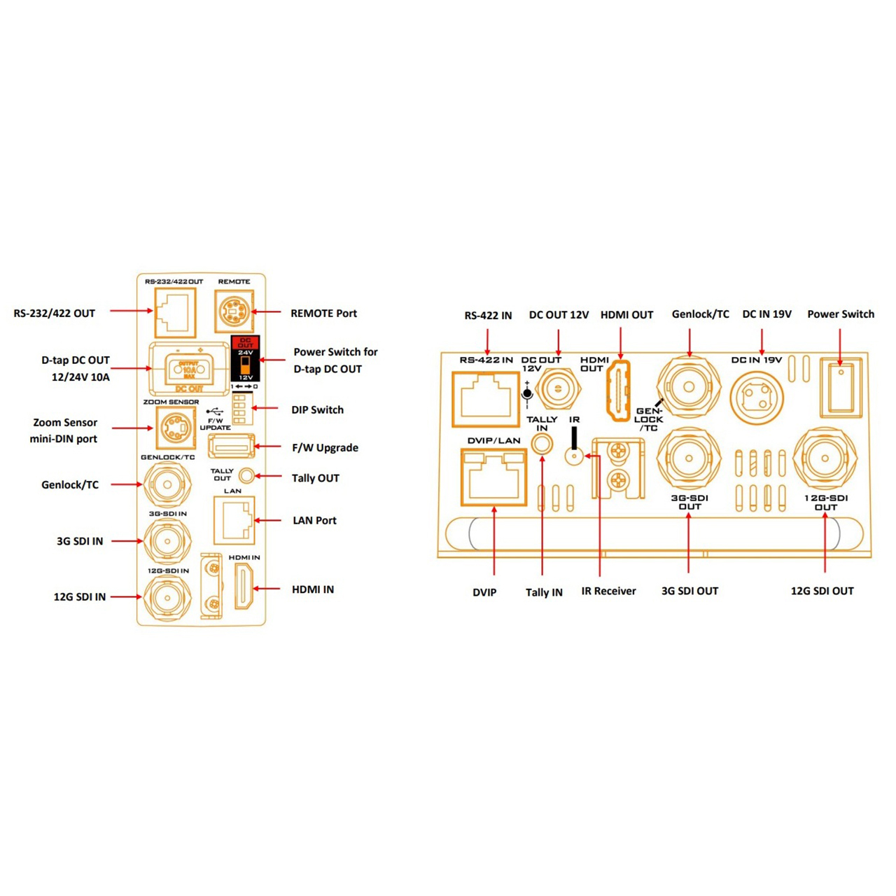 The PTR-15 boasts an extensive range of signal interfaces for seamless integration with the remote head. These interfaces encompass SDI, HDMI, RS-232, RS-422, DVIP, Tally, and LANC, providing diverse connectivity options.