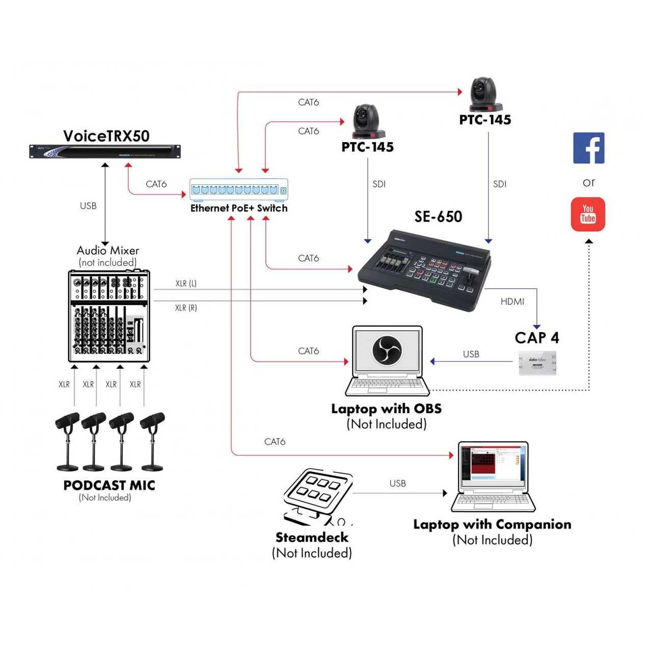 Datavideo VoiceTRX50 reacts instantly to audio activity from USB mixers, enabling a fully automated multi-camera workflow for creators, educators, and broadcasters. Automatic switching follows the active speaker, delivering clean, natural transitions. With CG subtitle support through Datavideo switchers, it ensures a clear and engaging viewer experience in-room, online, or on-demand.