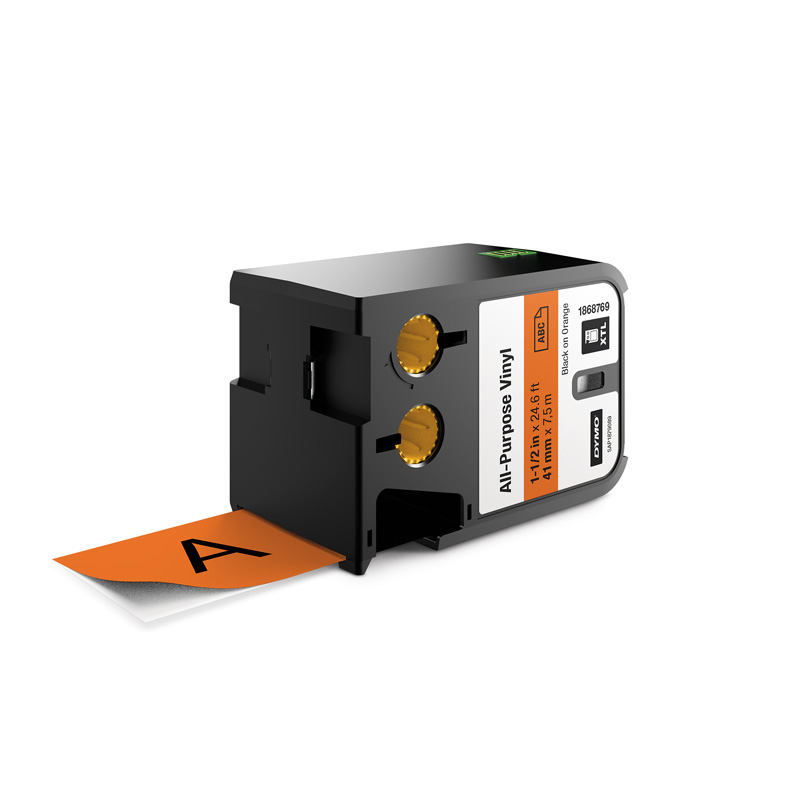 Dymo 1868769 XTL 1-1/2-Inch (41 mm) All-Purpose Vinyl - Black on Orange