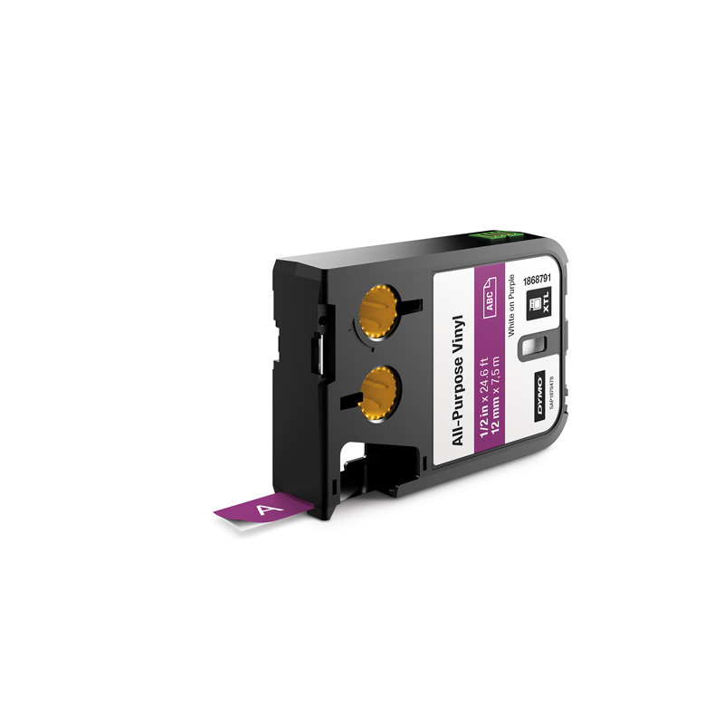 Dymo 1868791 XTL 1/2-Inch (12 mm) All-Purpose Vinyl - White on Purple