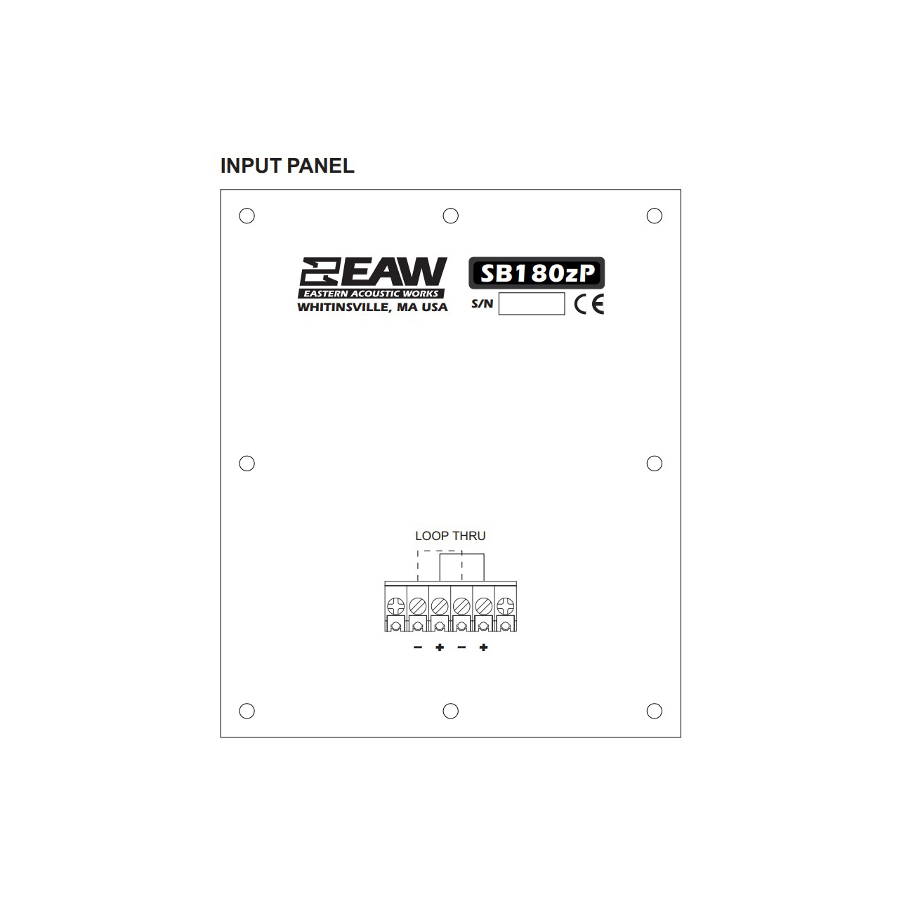 Eastern Acoustic Works' SB180ZP premium subwoofer is designed for the most demanding professional applications. A broad range of capabilities and sizes provide the designer with selections that can be specifically matched to their application. Top quality drivers, engineered by EAW, provide the highest output and best sonic performance possible for a given form factor. All SB models are direct radiating, with optimally tuned, vented enclosures. SB subwoofers are the choice where the best sonic performance, highest reliability, and most robust physical construction are required. The SB180zP is a high output, mid-size subwoofer system. This versatile, all-purpose subwoofer is designed for permanent installation where the fatter-sounding output of an 18 inch driver is desired. The SB180zP works well with most full-range loudspeakers in a variety of applications including: small houses of worship, small auditoriums/theaters, A/V systems, hotel ballrooms, meeting rooms, classrooms, exhibit areas, f/x reinforcement, cruise ships, cinemas, and small dance clubs. The SB180zP is designed to be used with today's sophisticated digital signal processing to optimize the LF response. EAW's MX Series processors are recommended for the required crossover and equalization.