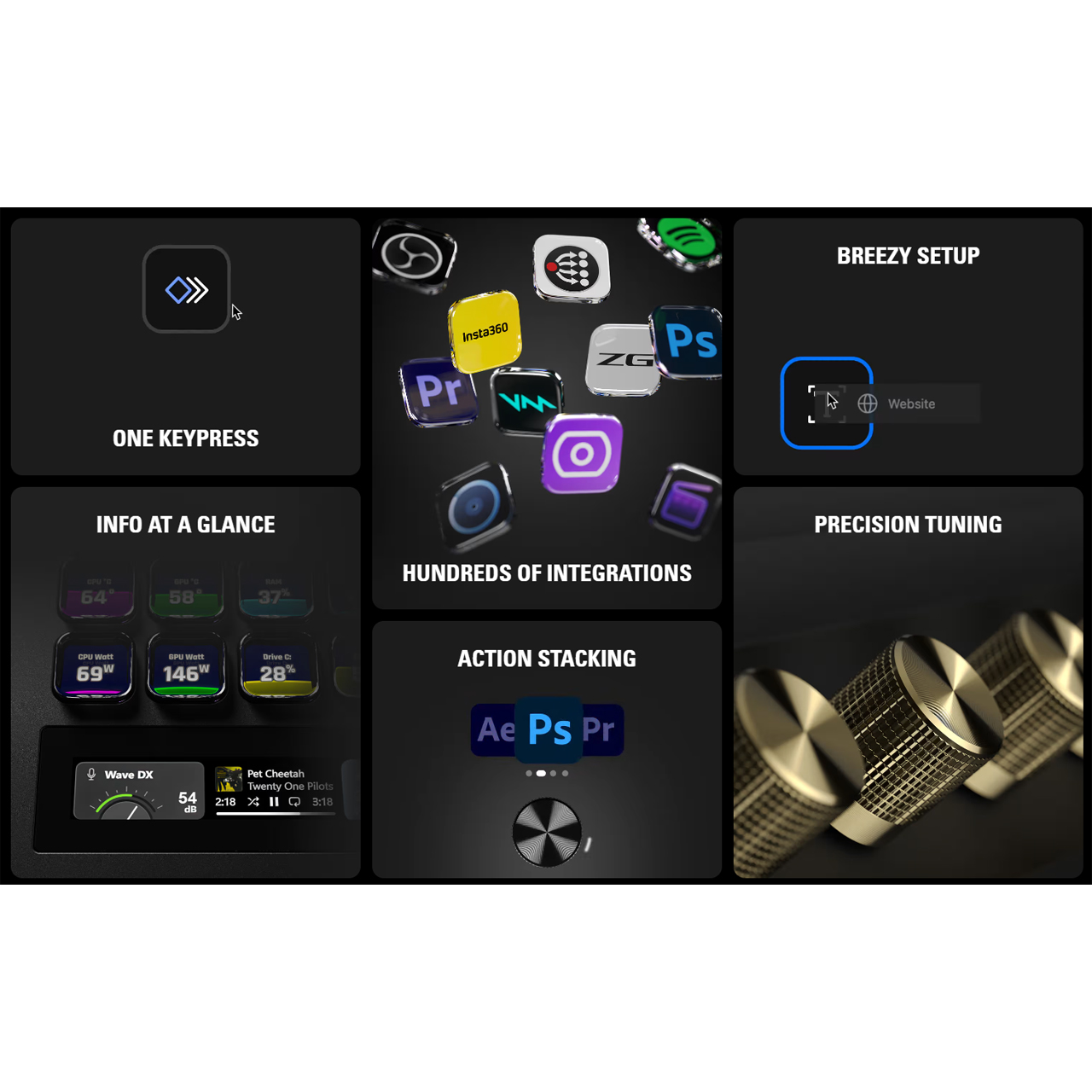 An expanded 8x4 grid provides a grand total of 32 LCD keys, each sporting crisp resolution and fluid playback. Easily customize them all with static or dynamic icons. Enjoy one-touch tactile control like never before. Get instant visual feedback to confirm your every command. And tap with confidence thanks to a non-slip magnetic stand that holds solid at the perfect angle.