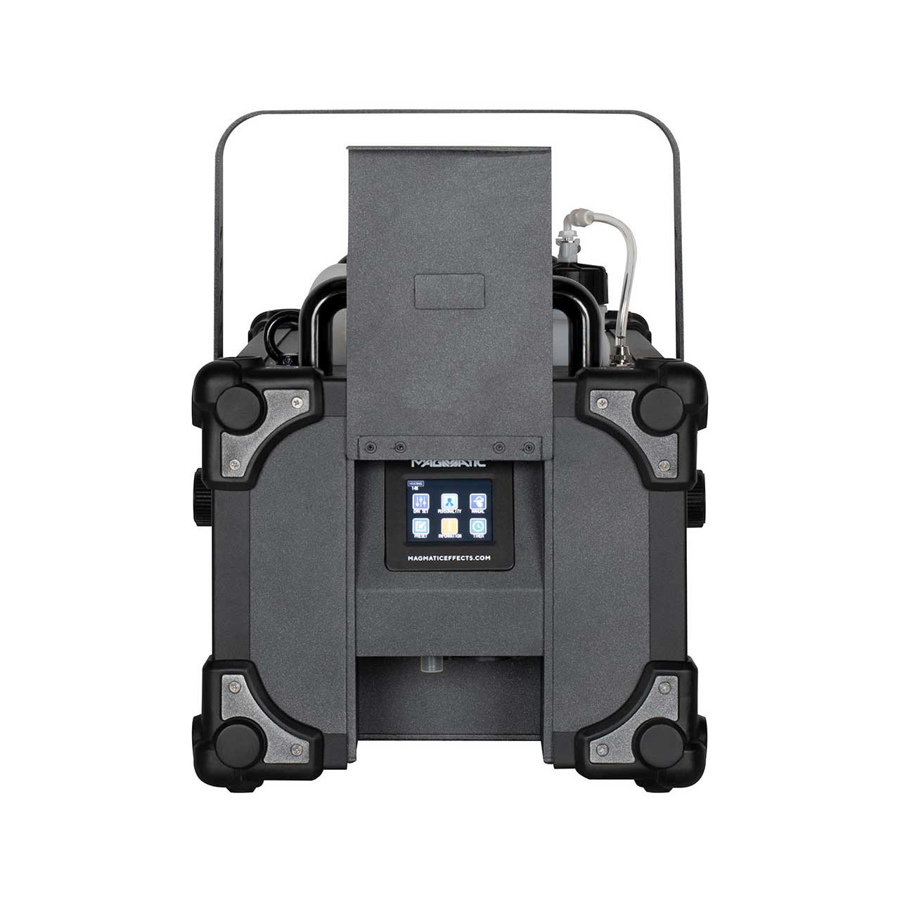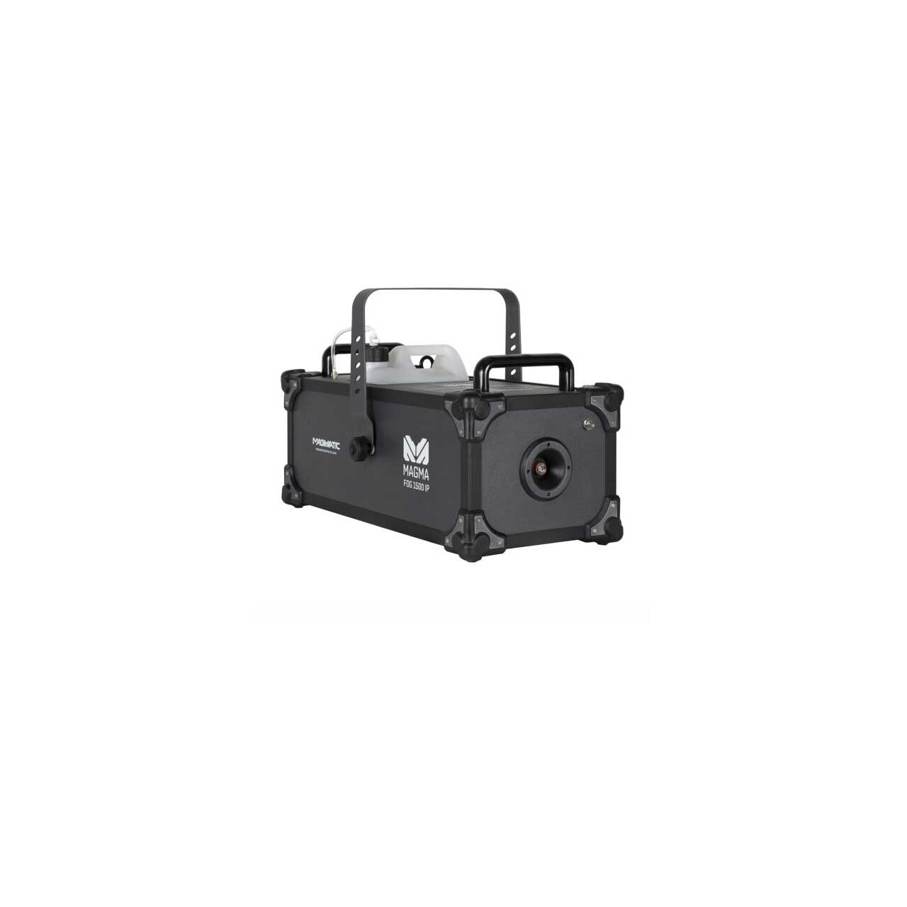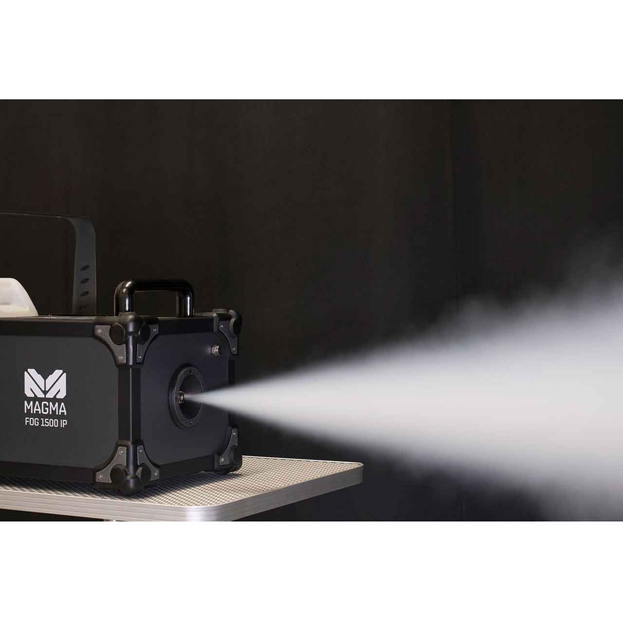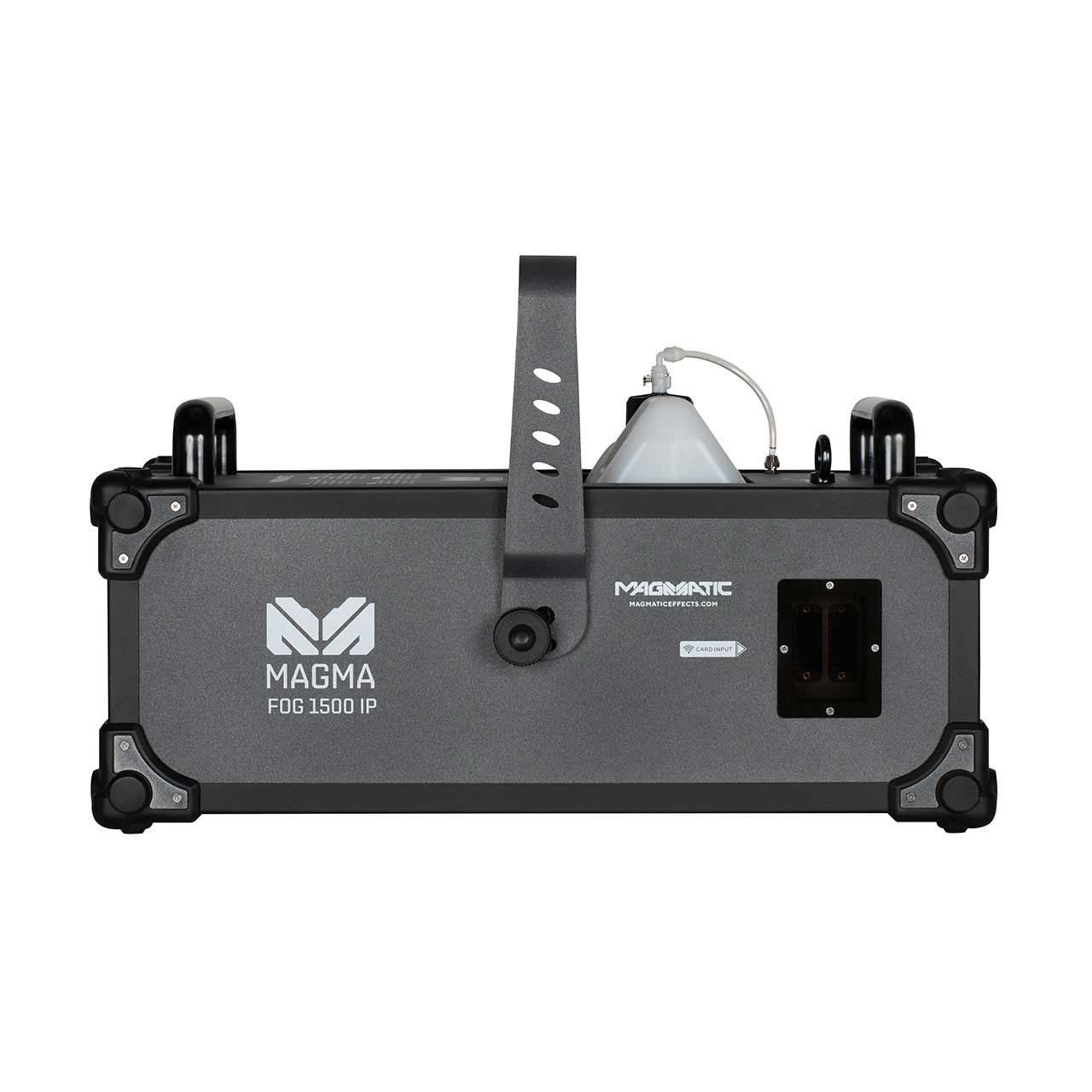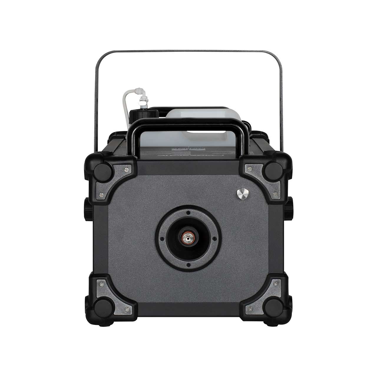 The Elation Professional PROTEUS MAGMA FOG 1500 IP™ is a 1500W water based, IP65 rated fog machine with a maximum output of 60,000 CFM (cu ft/min). Features include an easy-to-use onboard LCD touch screen, an intuitive DMX-512 and RDM control, and optional wired and wireless remote-control. Each MAGMA FOG 1500 IP comes equipped with a thermally protected heat exchanger that has an initial warm up time of 14 minutes, with a fluid consumption rate of 6.76 oz (200 ml/min). This unit is designed with a durable aluminum housing, IP65 locking power in, IP65 locking 5pin XLR connectors (DMX In/Out), a 5-liter (1.32 gallon) tank, two heavy duty carry handles, and a hanging bracket for truss mounting.