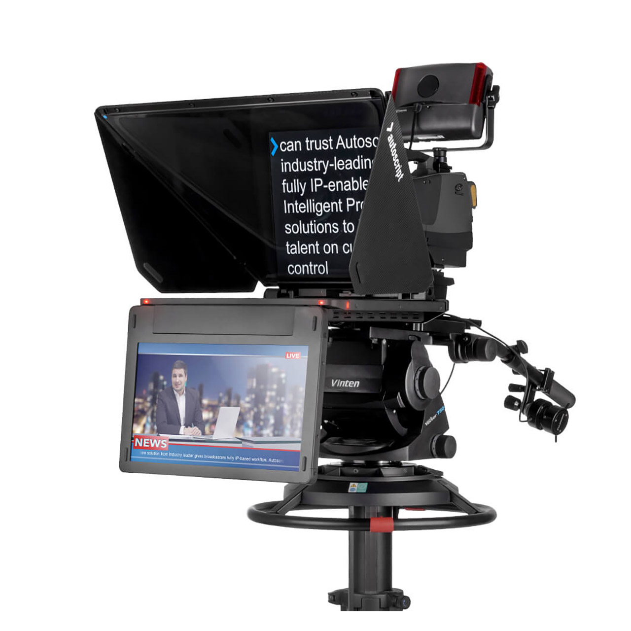 The EPIC-IP 19" combines integrated accessories and talent monitor with high contrast, high-bright prompt monitor to create a presenter information centre that empowers clear delivery through the lens in any situation.