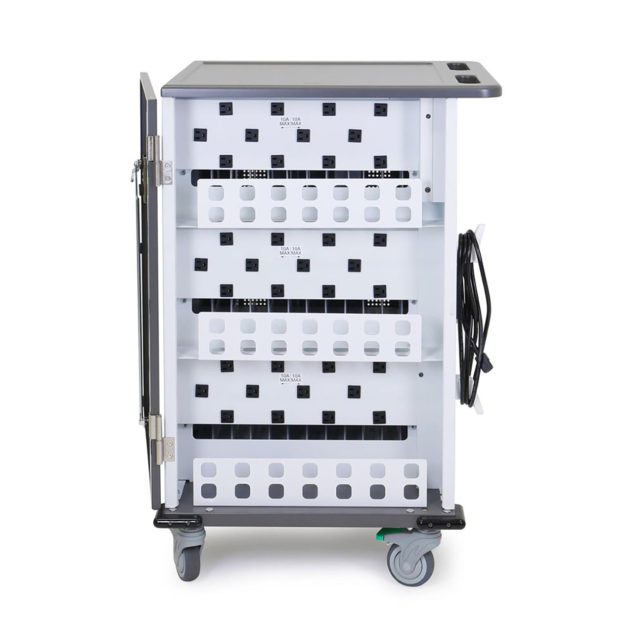 - Per device maximum weight of 6lbs (2.7kg) assumes 10x devices per shelf in a cart configured to hold 30x devices in total.