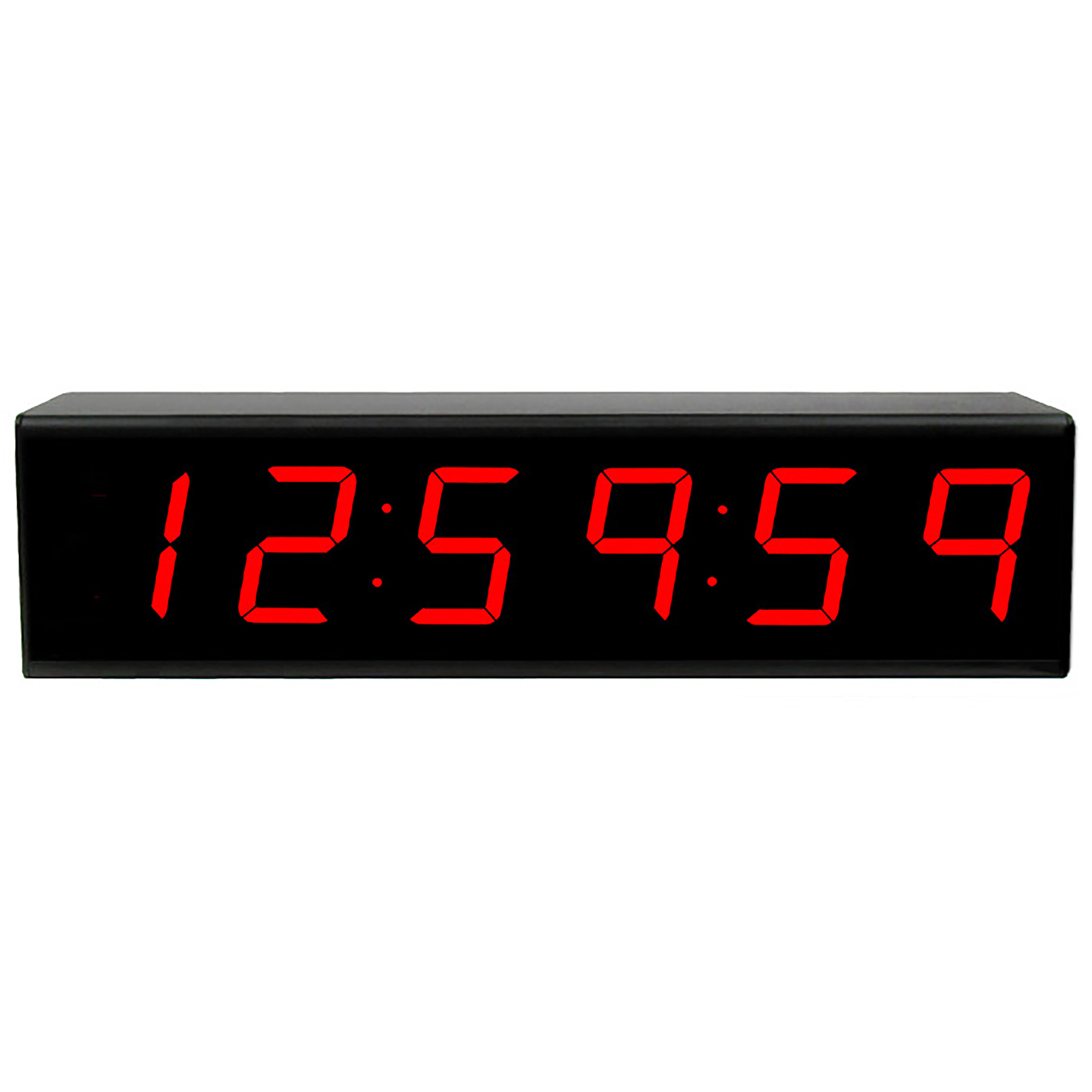 The ESE ES-943U/CW/NTP-C/PoE is an NTP Time Display featuring 4" high bright red LED displays. The unit is housed in a black-textured aluminum wall-mount enclosure. The unit accepts an Ethernet connection via the rear-mounted RJ-45 connector and is set to synchronize with an NTP server. All setup features (IP address, time zone offset, etc.) are configured through a Web Page Control Panel interface. Viewing ditance is measured at 120 feet, The ES-943U is able to auto-detect, read and display ESE, SMPTE/EBU & ASCII.