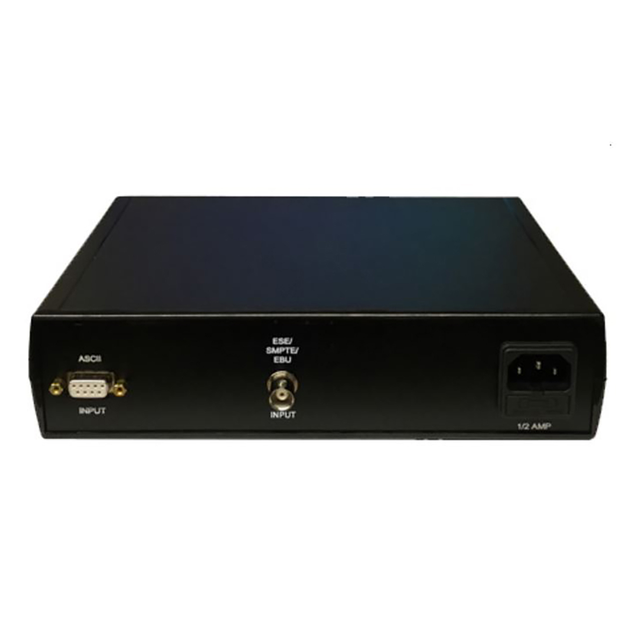 The ESE ES-166UE is a Time Code display featuring 1" Amber LED displays. The unit accepts, via the rear-mounted BNC connector, either ESE Time CodeT (TC76T, TC89T, or TC90T) or SMPTE/EBU Time Code. RS-232C ASCII Time Code (format "0", "1" or "A" at 9600 baud) may be input via the rear-mounted 9-pin connector.