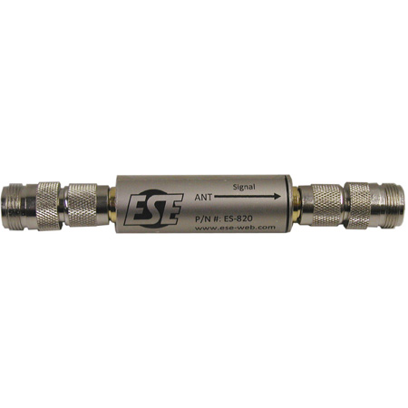 The ES-820 is an inline GPS amplifier which allows extension of the GPS antenna cable. Depending upon the type of cable, 100 to 400 feet of additional cable may be added per amplifier. When using more than one amplifier, we recommend the use of the ES-AB1A GPS Amplifier Power Supply between the Master Clock and the amplifier chain. The standard ES-820 is fitted with TNC connectors suitable for direct use with RG-58 type cables. Optional adapters are available for connection to lower loss RG-8/RG213/Belden 9913 type cables using "N" connectors (order ES-820N). Typical cable extension lengths are: