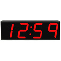 The ES-971 is a Time Code display featuring 7" high red LED displays. The unit is housed in a black-textured aluminum wall-mount enclosure (9" H x 28.75" W x 3.5" D). The unit accepts, via the rear-mounted terminal block or BNC connector, either ESE Time Code (TC76, TC89, or TC90), SMPTE LTC Time Code, EBU Time Code or RS-232C ASCII Time Code (format "0" or "1" or "A" at 9600 baud). The ES-971 will automatically determine which code is being received. If receiving ESE Time Code from a timer, the unit will display Minutes and Seconds. Optionally, it can read NTP and/or recieve Power over Ethernet (PoE).