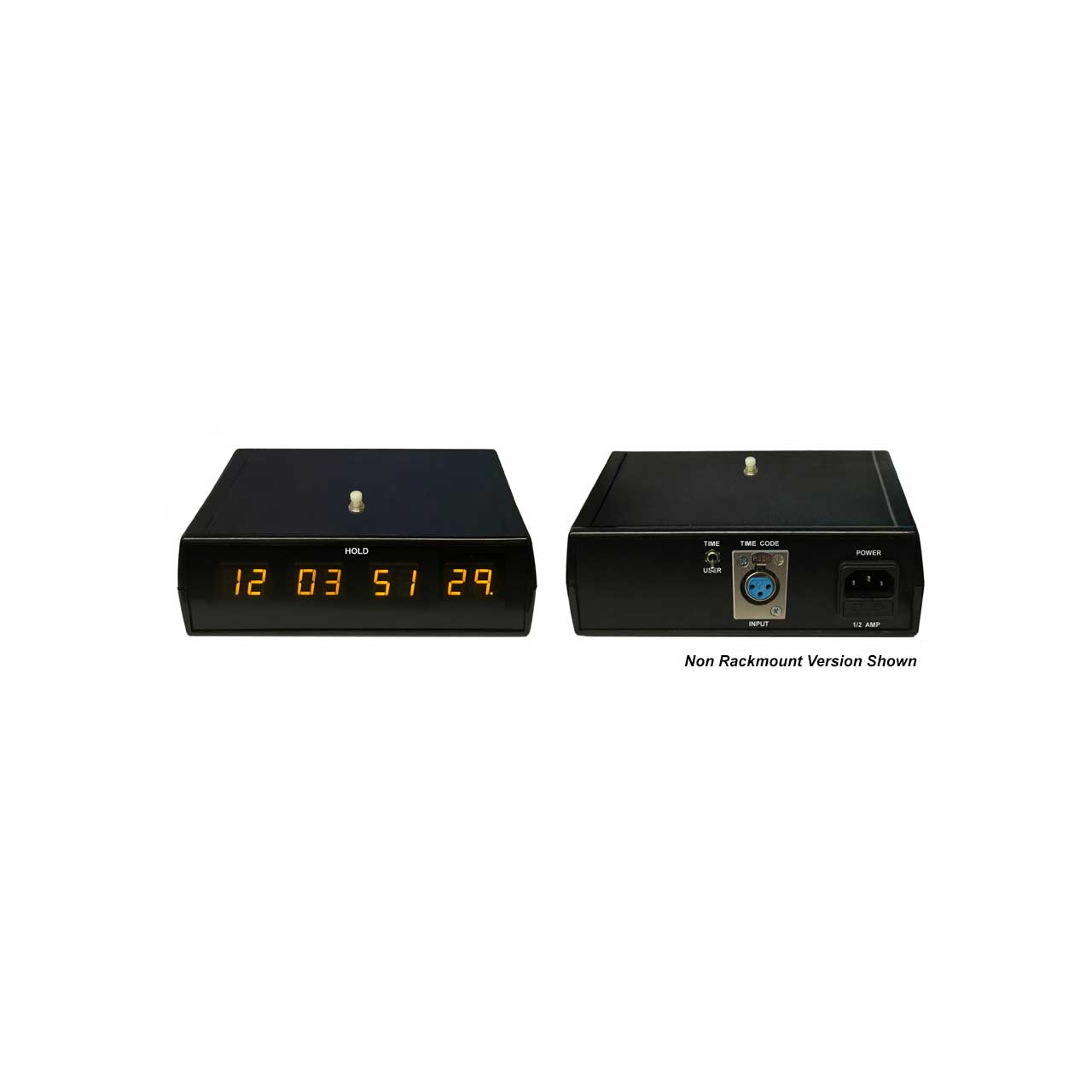The ESE ES-453UE/PJ/BLACK is a microprocessor-based SMPTE Time Code display. This unit reads in both forward and reverse direction, from 1/20 to 10x play-speed. The unit features a .56" high yellow LED display and comes standard in a desk-top case (rack-mount chassis optional). The unit displays Hours, Minutes, Seconds and Frames, or may be switched to display User Bit digits.