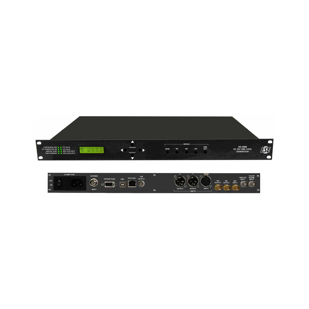 The SD-488E is an enhanced version of the SD-488. New features include selectable color fonts, RP-188 Time Code functionality, selectable onscreen date formats and front-panel entry of user text data.