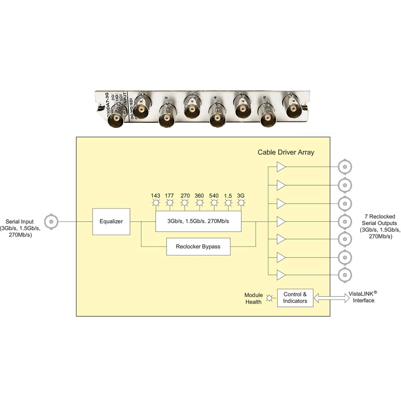 Ideal in applications where a large quantity of outputs is required, the DA features an auto-equalized input with seven isolated reclocked outputs.