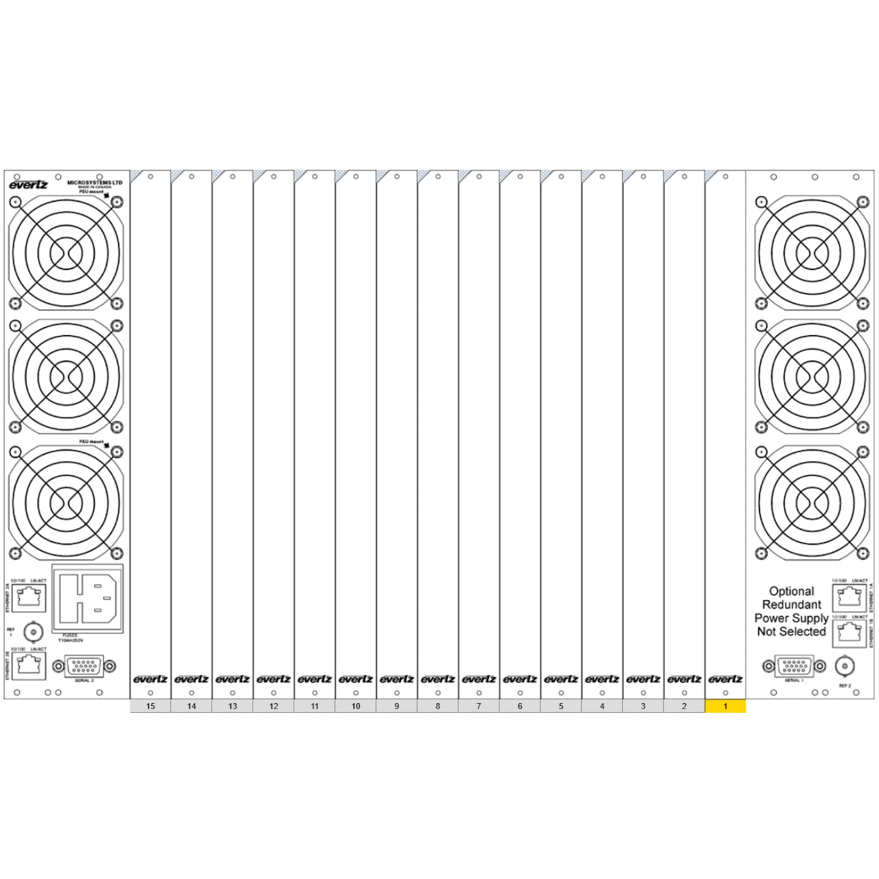 Additionally all frames offer hot-swappable dual redundant power supplies that allow for power supply and fan replacement without compromising the integrity of critical signal paths and true remote monitoring of all modules and signals within the chassis from VistaLINK® via the frame controller. This confi guration provides the SNMP network communication interface from the VistaLINK® Network Management Software to the chassis over the local or wide area network.