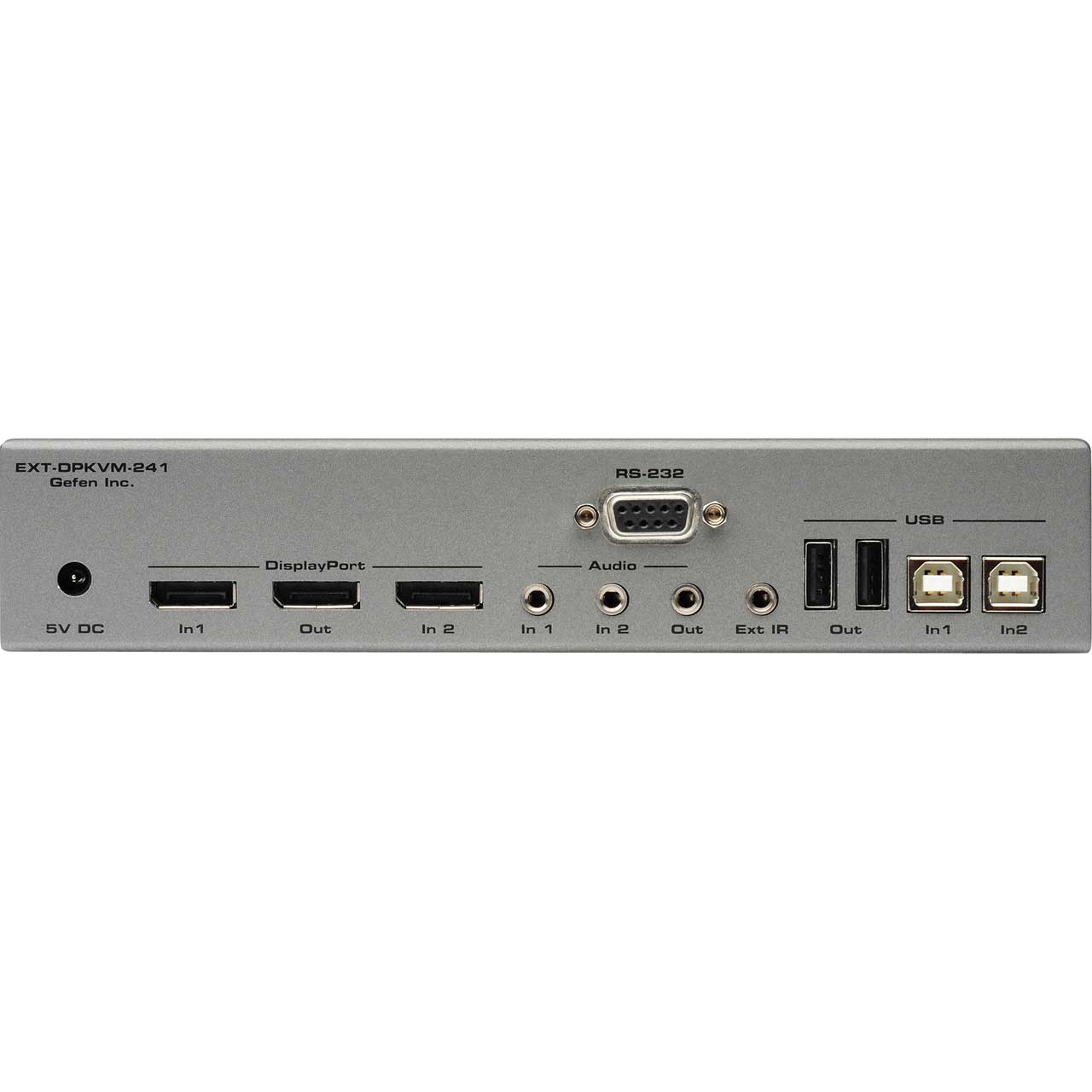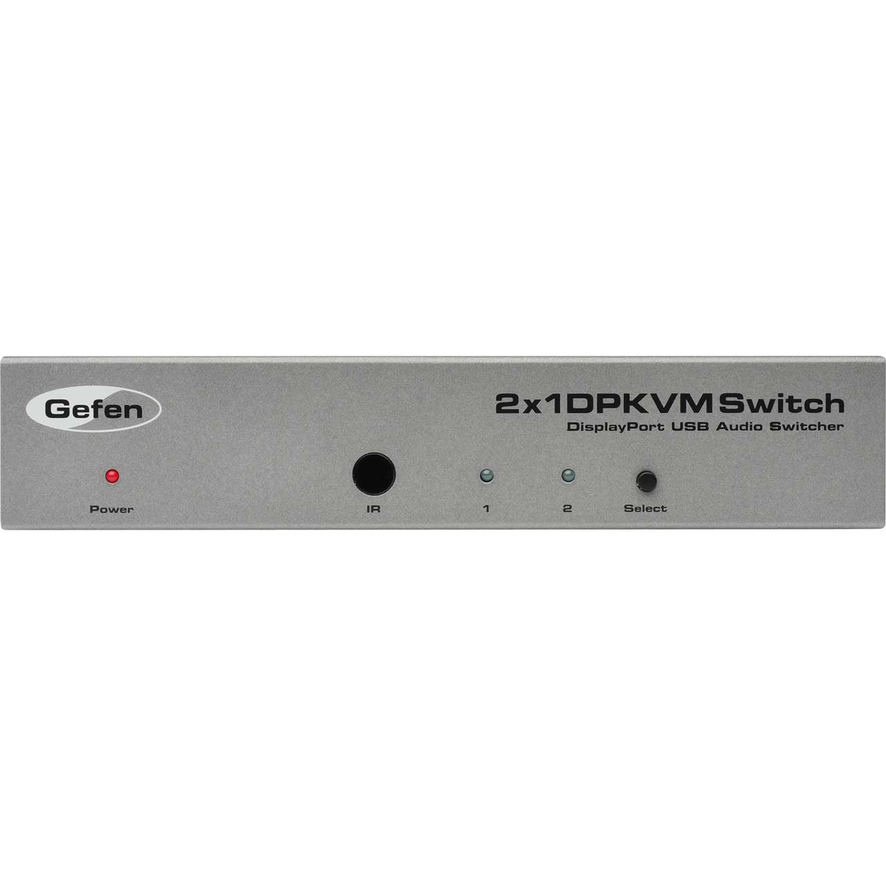Switch between two computers effortlessly using the Gefen 2x1 DisplayPort KVM Switcher, utilizing one display and one USB 2.0 port for a keyboard and mouse. Switch audio, video, and control signals for each computer. Access two computers from one workstation without having to use a network. Switch through the front panel "select" button, using the supplied IR remote control or via the RS232 port. The Gefen DisplayPort KVM Switcher is compatible with both Macintosh and PC keyboards, mice, and displays.