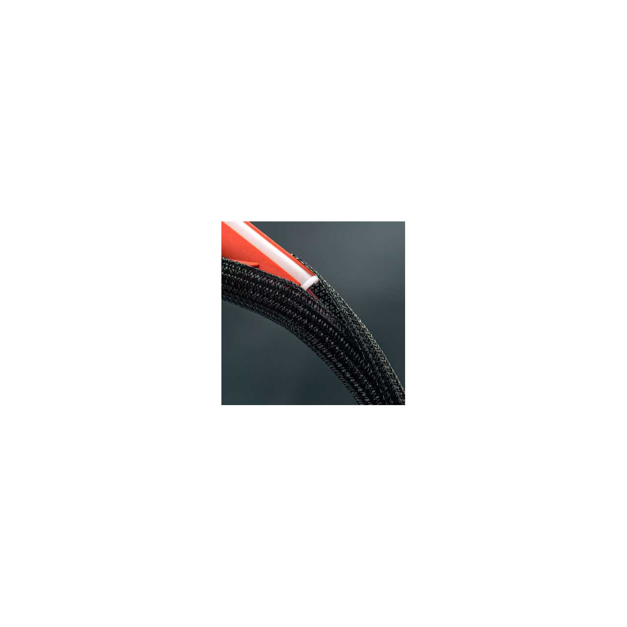 The 10 mil PET braid is lightweight, quiet and flexible. The 25% edge overlap (at nominal diameter) allows coverage around inline plugs, connectors and splices.