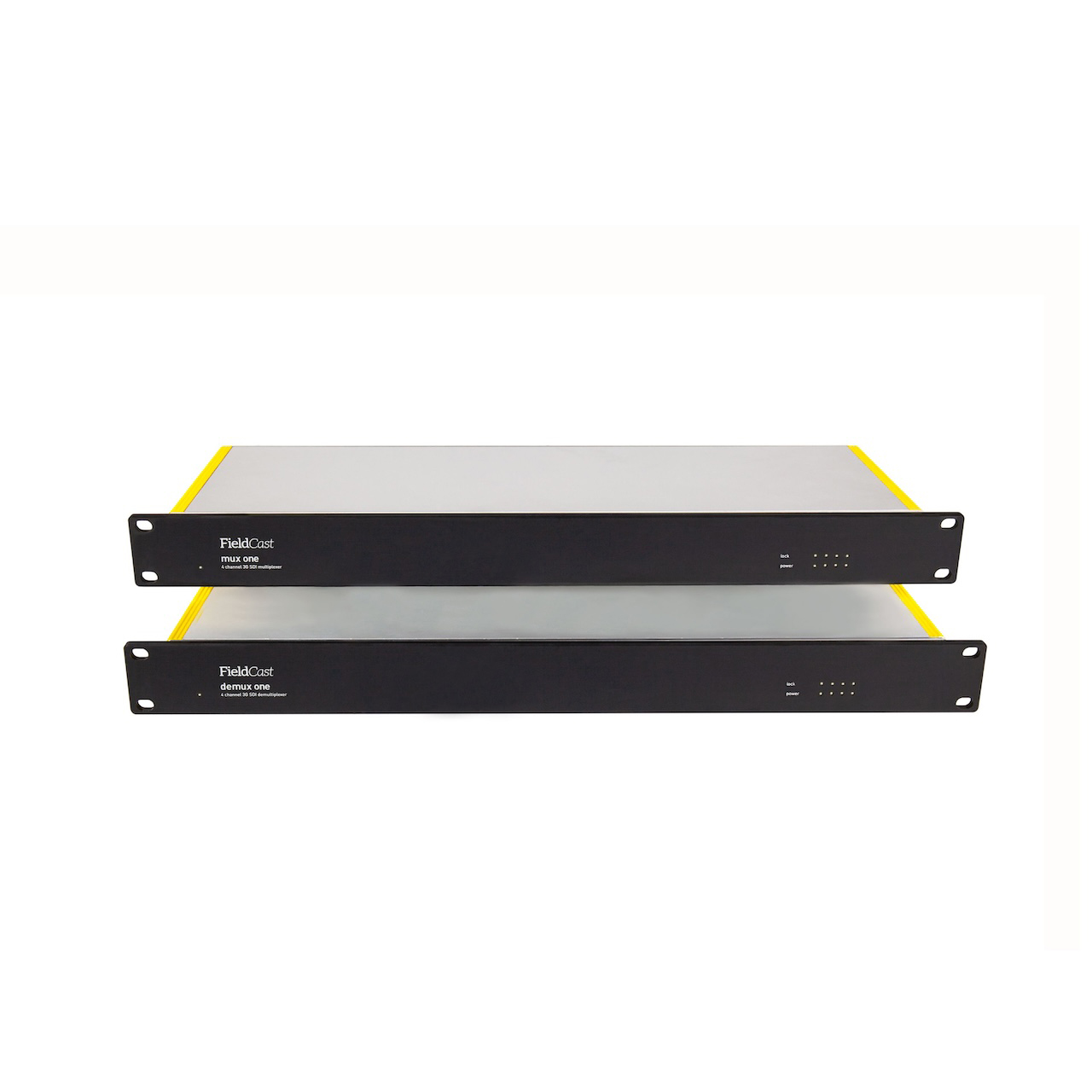 • LED Indicators: Black front panel with 2mm warm white led indicators containing (per Mux and Demux unit). 1x led indicator for power, 4x led indicators for channel module activity, 4x led indicators for SDI signal input activity