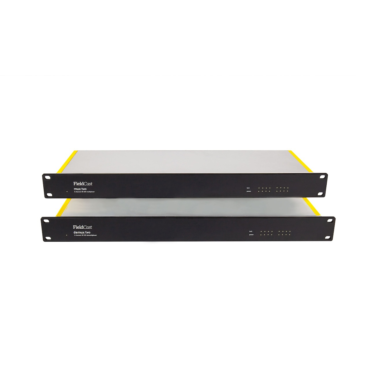 Is your infrastructure such that you only have access to one single mode (simplex) fiber optic connection? The FieldCast CO143 Mux Two Plus and Demux Two Plus can help you to get this all done, plain and simple. Multiplex up to eight channels of video plus Ethernet, and get all data from A to B using only one strand of fiber!