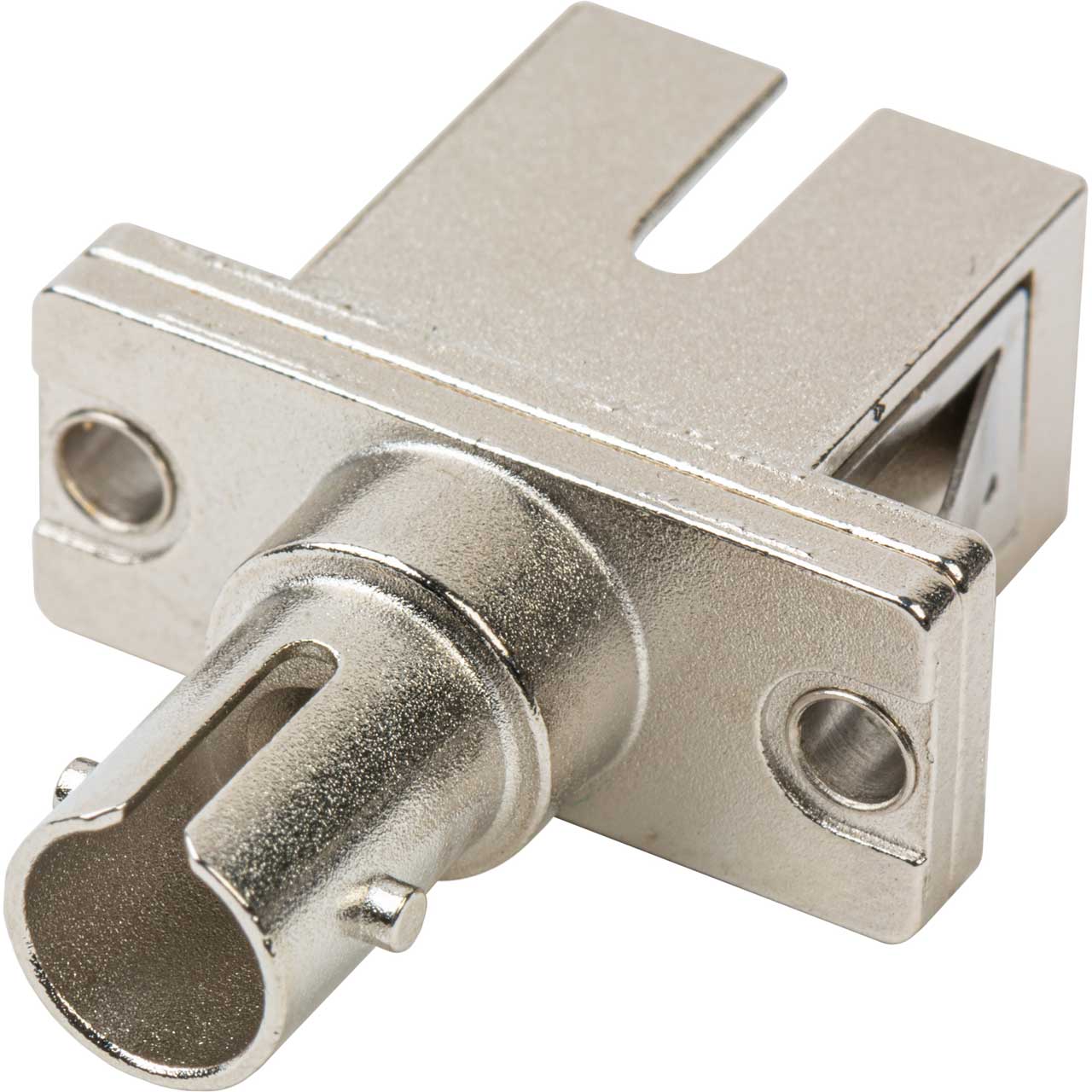 ST to SC Metal Fiber Optic Simplex Singlemode Hybrid Adapter - This item provides the link between Fiber networking devices. This coupler allows for connecting of similar connector types for long-distance networks at high speeds.