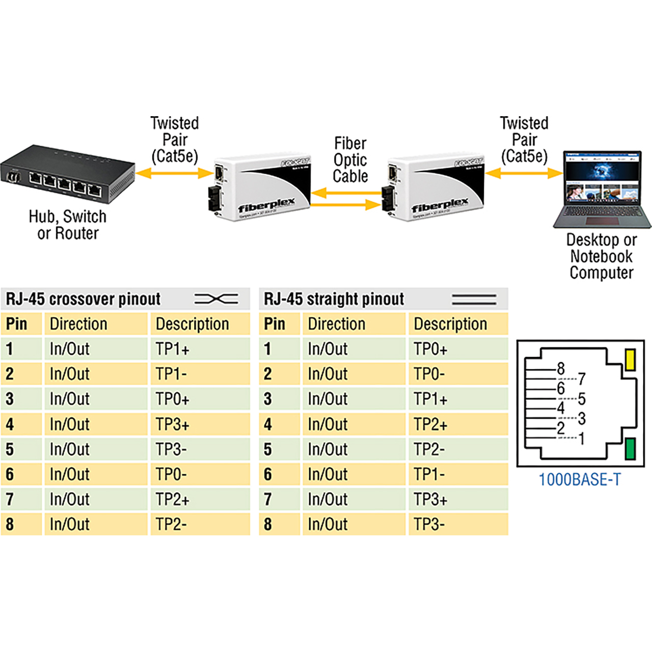 The copper interface is fully automatic. If TP+ and TP- are reversed, the unit will automatically swap the polarity internally. Similarly, if the transmit and receive pairs are reversed, the unit will automatically swap both pairs internally.