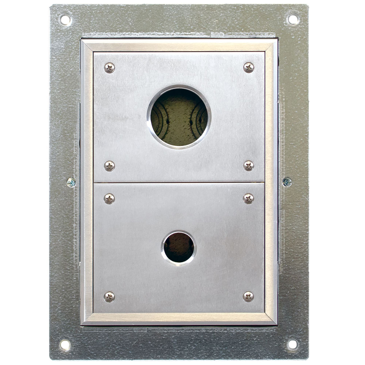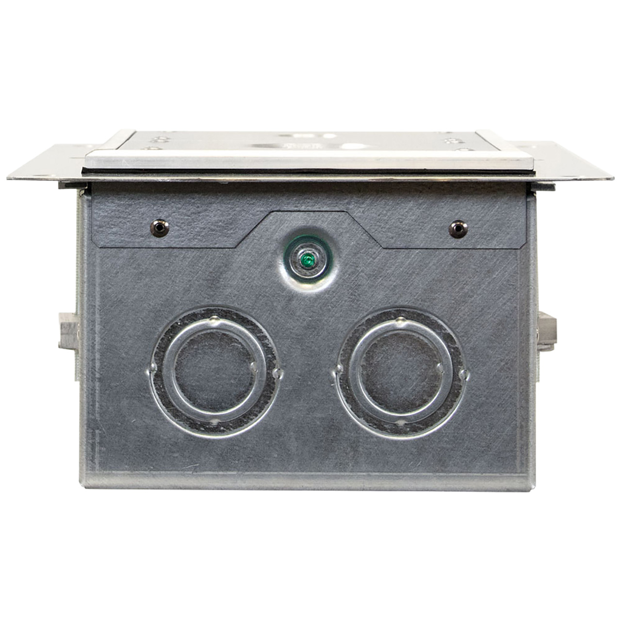 The FSR FL-340-FF-B brings an integrated furniture feed capability to FSR's floor box lineup. Designed as a compact, two-chamber solution, this floor box allows cables to pass directly from the floor into furniture, enabling clean, efficient power and connectivity in modern interiors. Based on the trusted FL-200 platform, the FL-340-FF back box features a rim and box securing clamps. It is designed for raised access or wood floor installations. Its low-profile cover is available in aluminum or black, with interchangeable plate options for flexible cable exit configurations. The cover system consists of 5 pieces: a blank plate, a plate tapped for a 1.5" fitting, a plate tapped for a 1" fitting, a 1.5" to 1" reducer bushing, a 0.75" to 0.5" reducer bushing, and a 1" closure plug. With two trim ring styles, two color options, and a UL scrub water rating, the FL-300-FF delivers a furniture feed solution that is as versatile as it is compact.