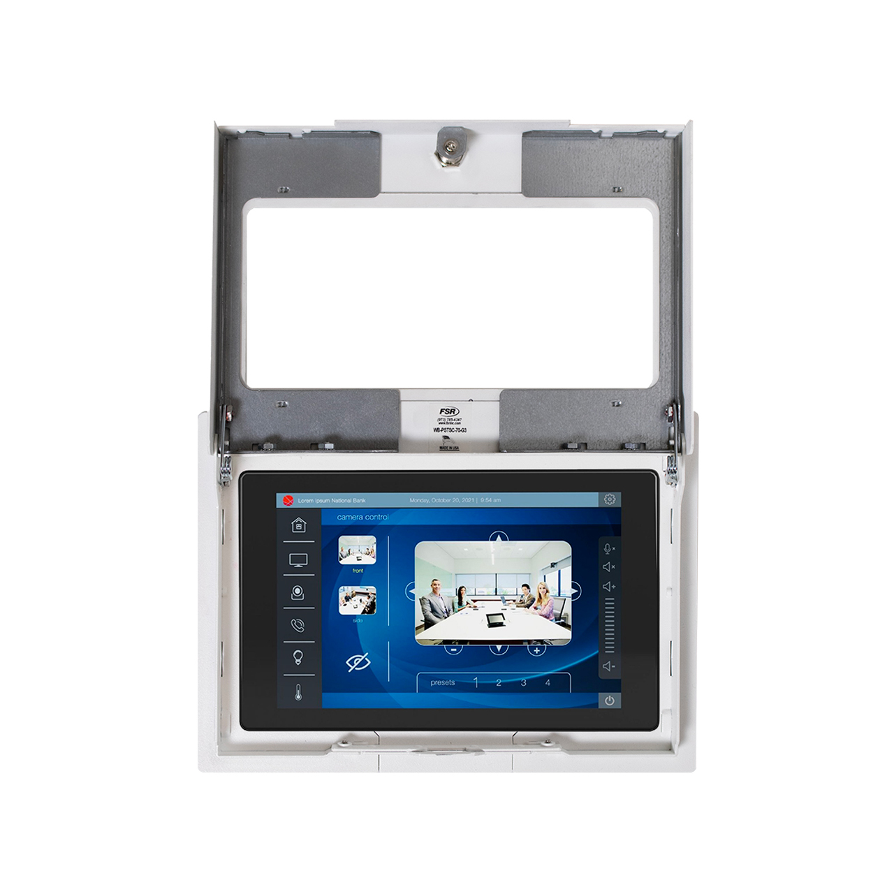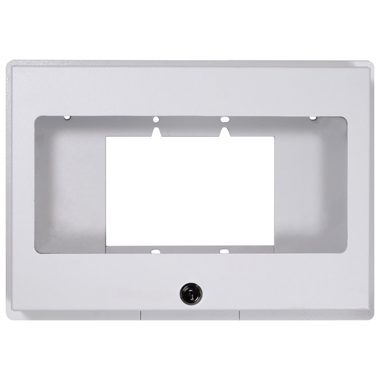 The FSR WB-TSC-SM-10 surface-mount touchscreen wall boxes are metal locking covers with clear acrylic windows designed to protect and restrict access to 5 to 10-inch touch panels mounted on a 2-gang back box. These wall boxes ensure clear visibility of wide-format displays while maintaining a sleek, low-profile design. The 180-degree hinge design allows the door to lay flat against the wall when open, providing users with unencumbered access to the front panel and making maintenance and operation hassle-free. The enclosure can be installed in landscape or portrait orientation; in landscape, the door can be mounted to open left or right; in portrait, the door swings up or down. This surface mount touchscreen wall box provides security against unauthorized access while allowing users to monitor the control panel's status through the clear window without opening the locked door.