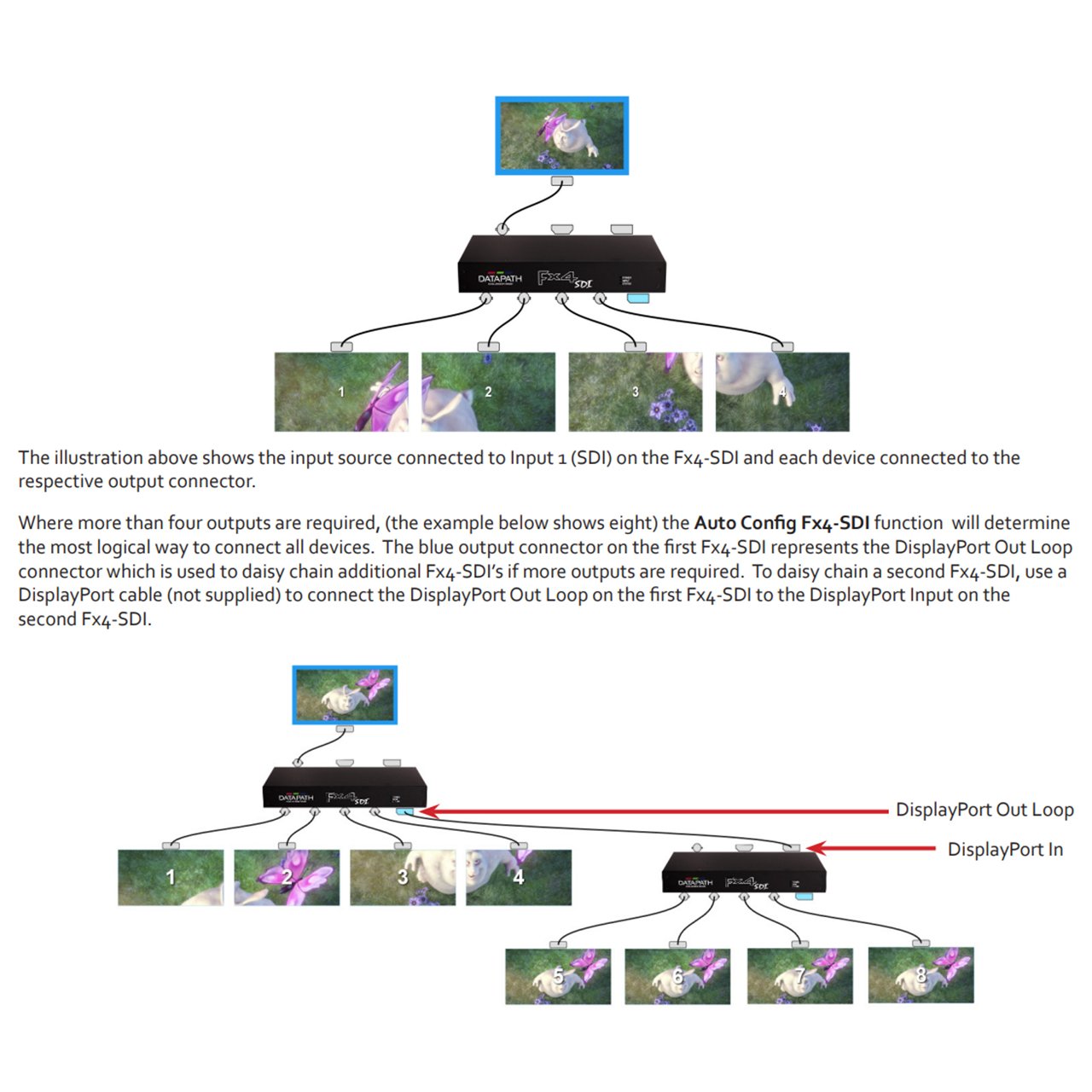 • 3 Input Choices: The Fx4-SDI features a choice of 3G-SDI, DisplayPort 1.2 and HDMI 1.4 inputs. The intuitive UI allows users to determine which input is used.