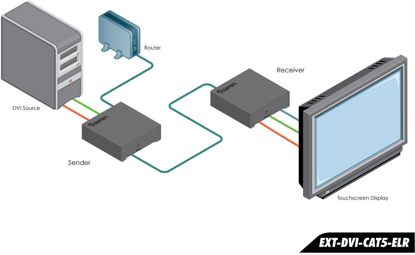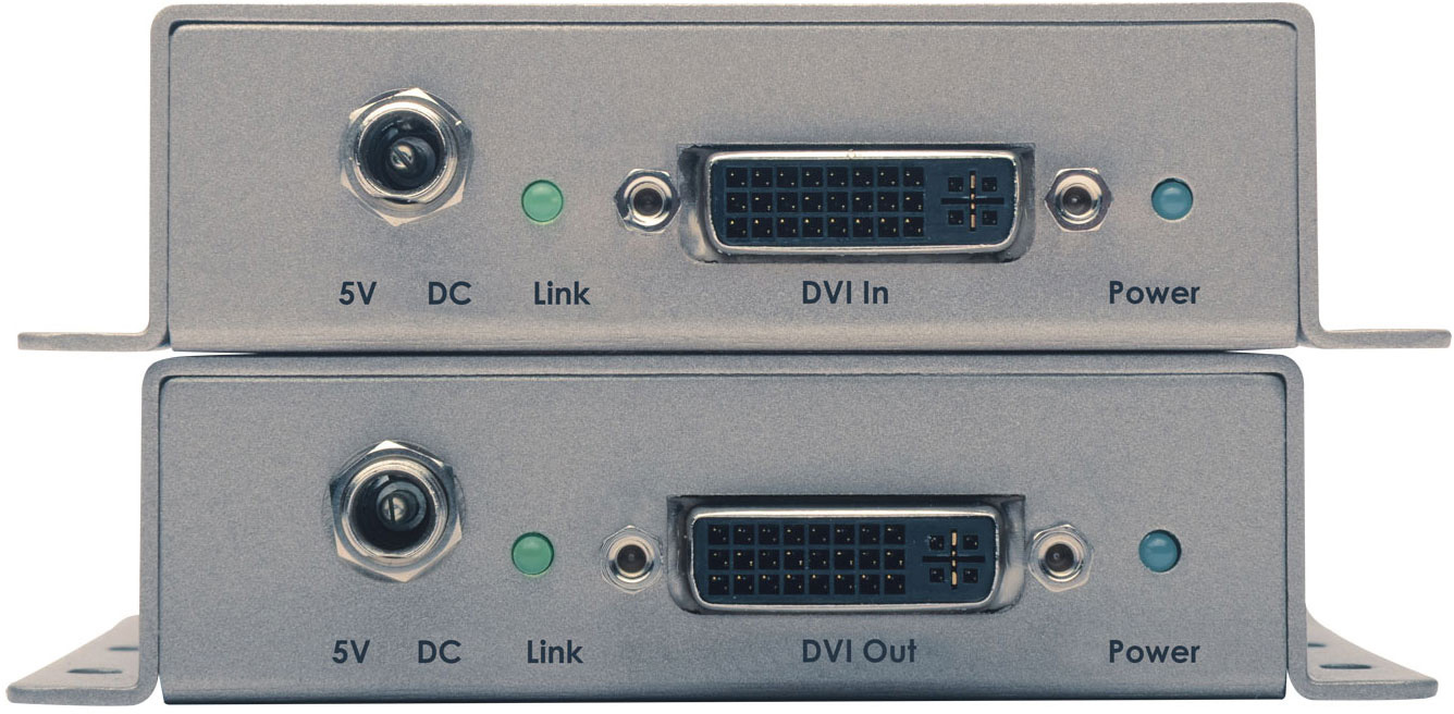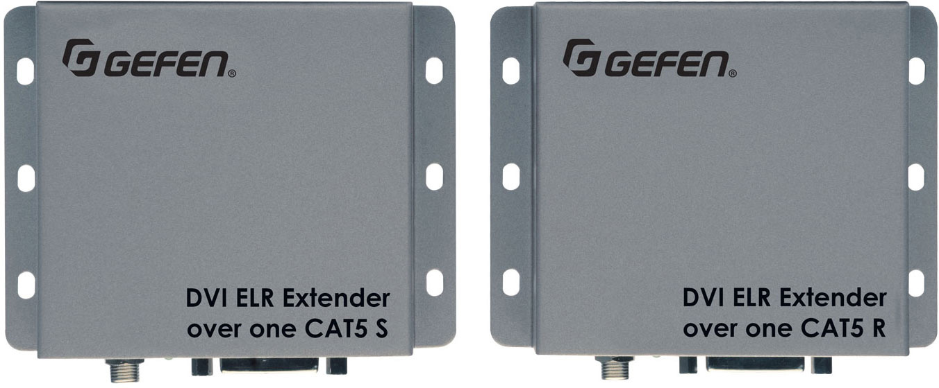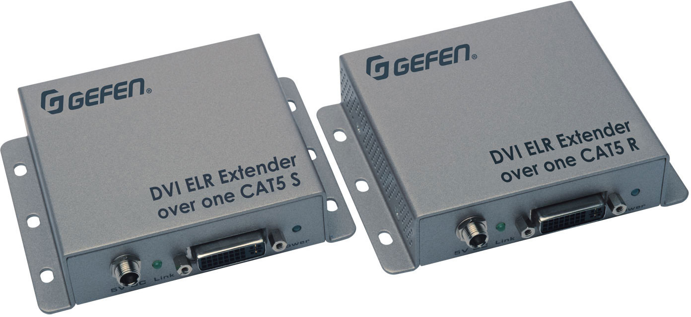 The DVI ELR Extender over one CAT5 allows the extension of a DVI source to a display, up to 495 feet (150 meters), using a single CAT-5e cable. This product is capable of HDCP and HPD pass-through. It can also be configured by the installer via DIP switches for maximum range or maximum bandwidth, and for low power consumption (auto sleep mode) or always-on operation. The DVI Extender over one CAT5 uses Gefen's ELR implementation of HDBaseT technology, allowing the DVI signal to travel along a single CAT-5e or better cable, reducing cable costs and facilitating installation.