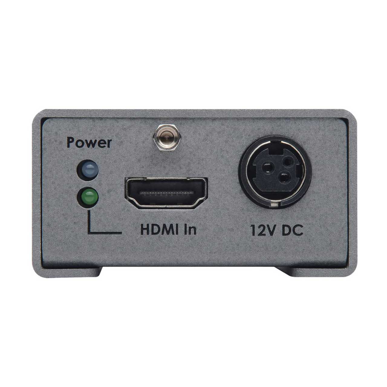 This product can be installed on camera gear via an industry-standard 1/4-20 attachment thread located on the bottom of the unit. It can also be surface-mounted using the included surface mounting bracket. The EXT-HD-3G-C is light and compact enough to be held in place using Velcro if your particular installation does not allow for the two preferred methods of installation described above. Set the DIP switches as necessary. Connect an SDI cable between the output of the EXT-HD-3G-C and an SDI display or other downstream equipment. Connect the HDMI source to the HDMI input of the EXT-HD-3G-C using the included Locking HDMI cable. Connect the included 12V DC power supply to the 3GSDI to HDMI Converter's power supply jack and to an available electrical outlet. To remove the power supply plug from the unit, disengage the lock by pulling back on its plastic sleeve. The power LED indicator will glow in blue to indicate that the unit is powered on. The HDMI In LED indicator will glow in green to indicate that an active HDMI source is present.Use the USB Mini-B port with Gefen Syner-G software suite for EDID customization as well as performing firmware updates. See the user manual for details.