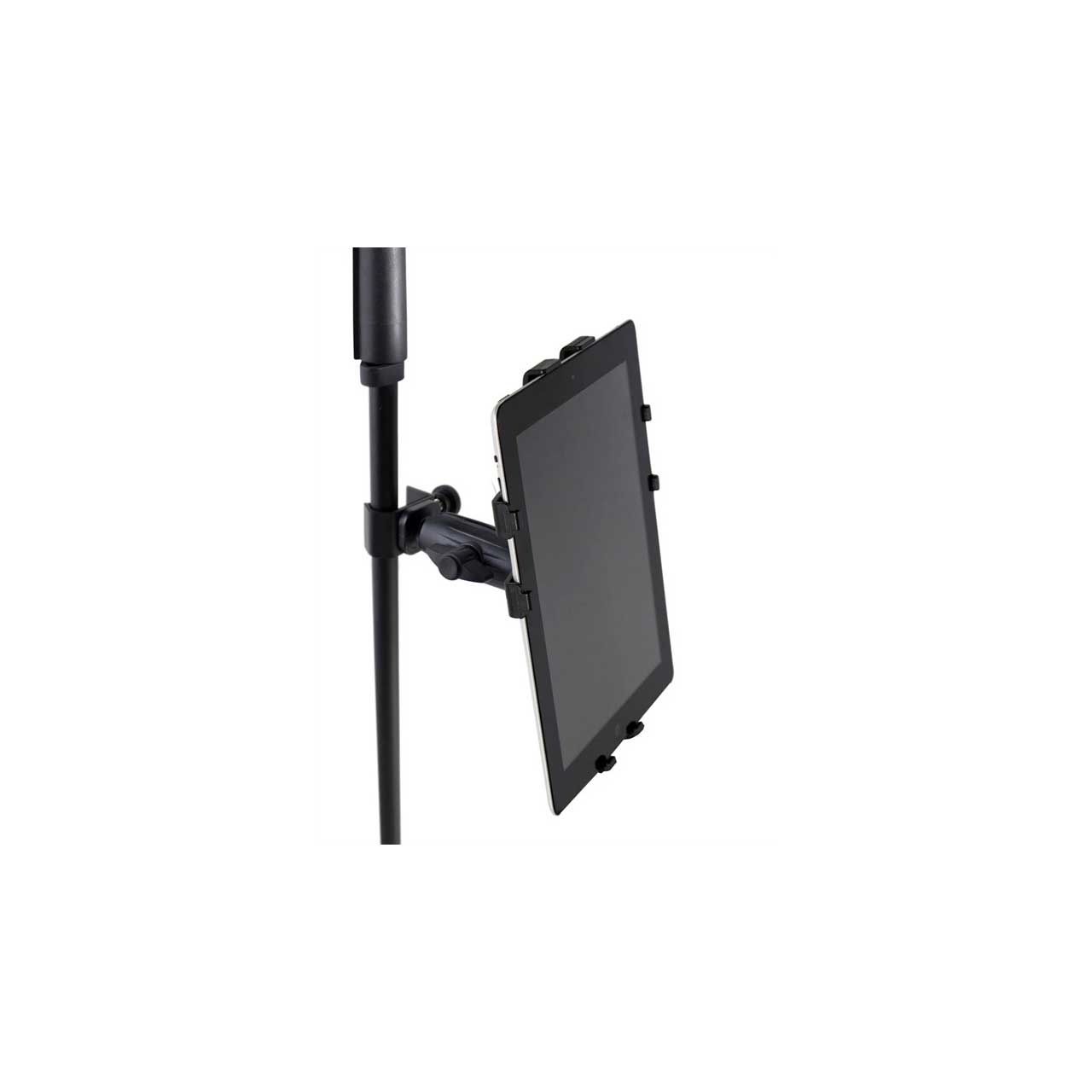 Made of a lightweight durable plastic construction, the Gator Tablet Clamp (GFW-UTL-TBLTCLMP) and Tablet Mount (GFW-UTL-TBLTMNT) features an adjustable tray designed to fit iPad 1, 2, 3 and most other large format tablets. The rotating multi-angle tray allows for both landscape and portrait orientation. The Tablet Clamp is a perfect for clipping your iPad to mic stands, drum hardware, guitar amps, and desktop surfaces. The Tablet Mount features a threaded mount that is compatible with most microphone stands.