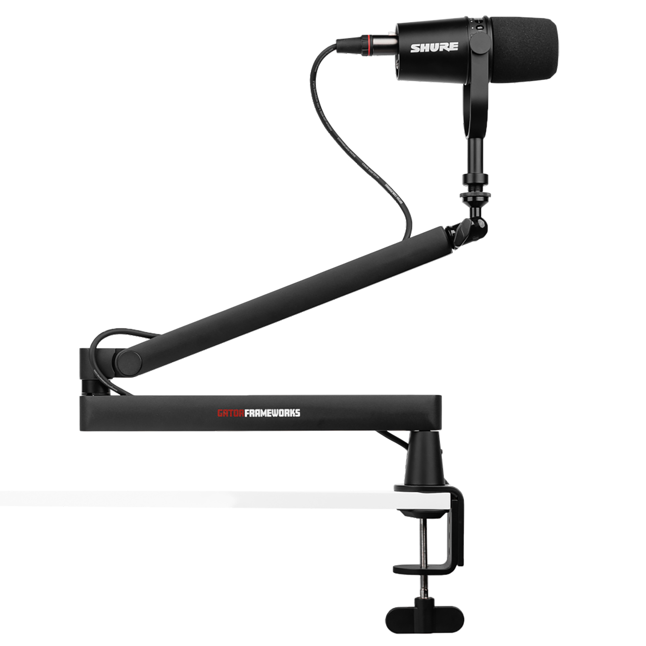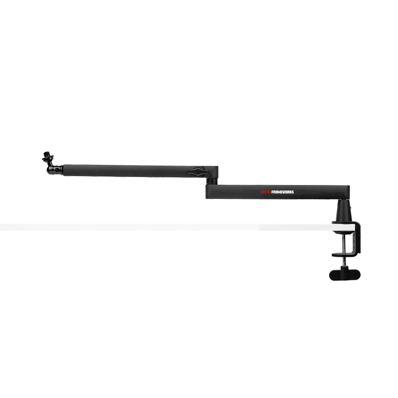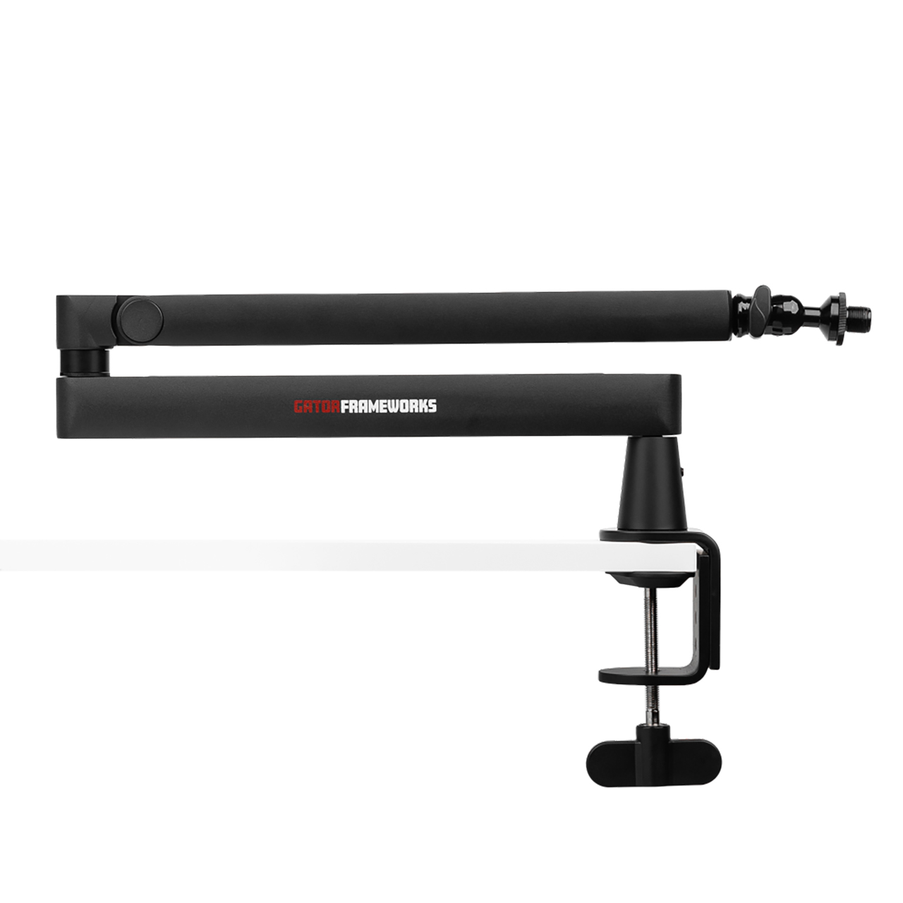 The Gator Frameworks GFWMICBCBM2500 Low Profile Broadcast Boom is designed to stay below the shoulder line, this low-profile boom ensures an unobstructed view of the host or guest, making it ideal for video recordings and live streaming. It securely clamps to desks and work surfaces up to 2.17" thick, offering a stable and space-saving configuration. Engineered for universal mic compatibility, the GFWMICBCBM2500 accommodates both US (5/8"-27) and Euro (3/8"-16) mic threads, seamlessly connecting to most podcasting and vocal microphones. Its fully adjustable design offers a 33" arm extension, 360° rotation, and 90° vertical movement, allowing for precise, whisper-quiet positioning to achieve optimal audio capture without disrupting your workflow or recordings. An integrated cable management channel with a magnetic cover keeps your XLR or USB cables neatly tucked away, preserving a clean, professional workspace. Proudly designed and supported in the USA by Gator's dedicated team in Tampa, Florida, the GFWMICBCBM2500 delivers outstanding craftsmanship and responsive customer care you can count on.
