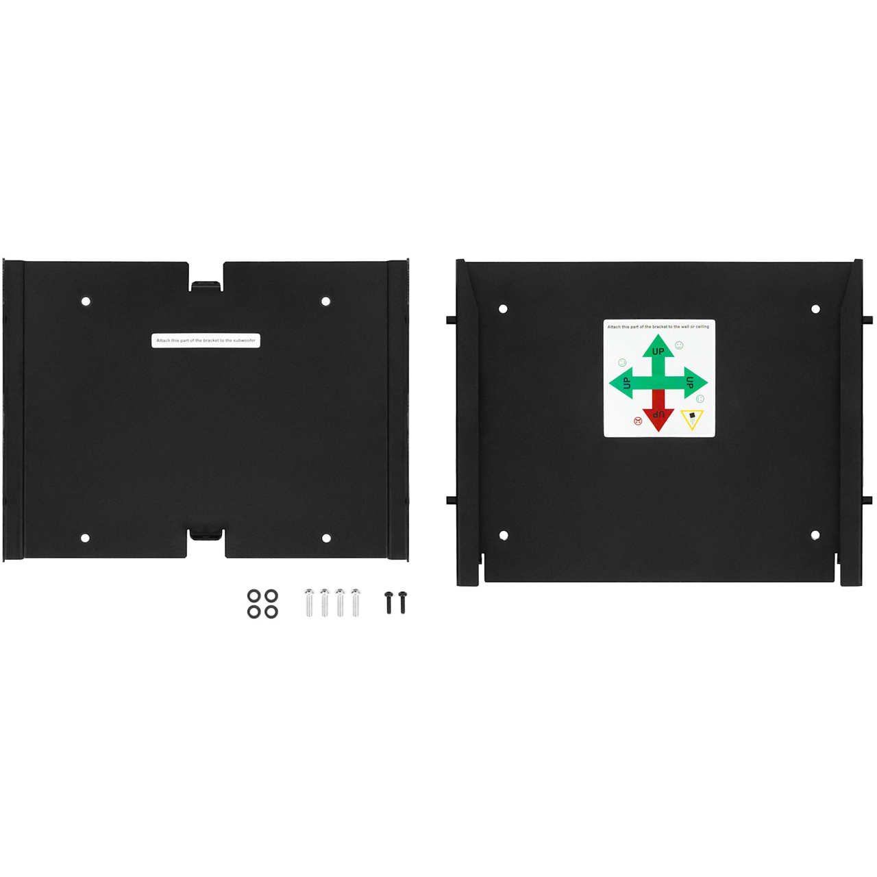 The Genelec 3440-400B wall and ceiling mount for the 3440A Smart IP Active Subwoofer is slim, sturdy, and easy to install. The mount consists of two metal parts that slide together, enabling attachment of the subwoofer to a wall or ceiling. After attaching one side of the mount to the subwoofer, the subwoofer slides in place from the top or the side and is locked in place by screws. The mount has a fixing point for a safety wire (not included). The mount is available in black powder coat finish.