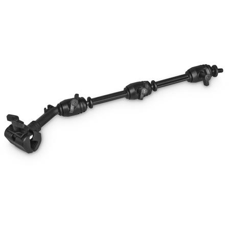 This tool lets you attach microphones, action cams and mobile phone holders to your microphone stand, for example, and set them up flexibly. Its fastening mechanism is quick and easy to assemble. The large clamping range from 15 to 35 mm and the three joints' 360° rotation options allow you to install it as you like. Simply loosen, adjust and tighten the wing-screws. Voila - you're all done!
