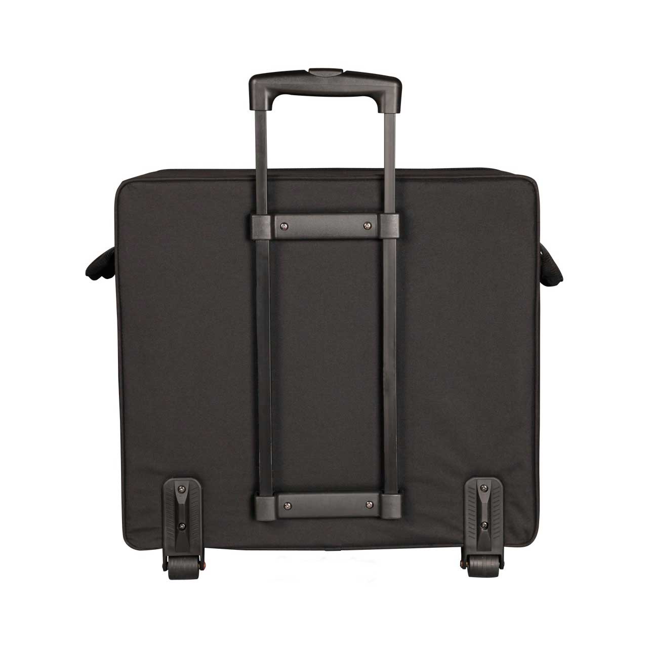 The G-PA TRANPORT case's lightweight design features thick plywood frame covered in a durable high denier nylon covering, providing heavy-duty protection in a lightweight package. The main compartment includes thick foam padding to cushion and protect your P.A. system and a large exterior pocket provides convenient storage for cables and accessories. The PA Transport case includes both thick webbed side carry handles and a rugged retractable pull handle and wheels.