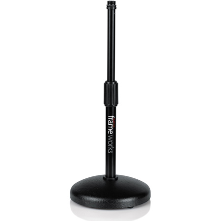 Gator GFW-MIC-0501 is a desktop microphone stand with round weighted base & adjustable height. The desktop microphone stand is a great mic-placement solution for streaming, podcasts, broadcasts, desktop recording, kick drums, or low-profile speaker cabinets.