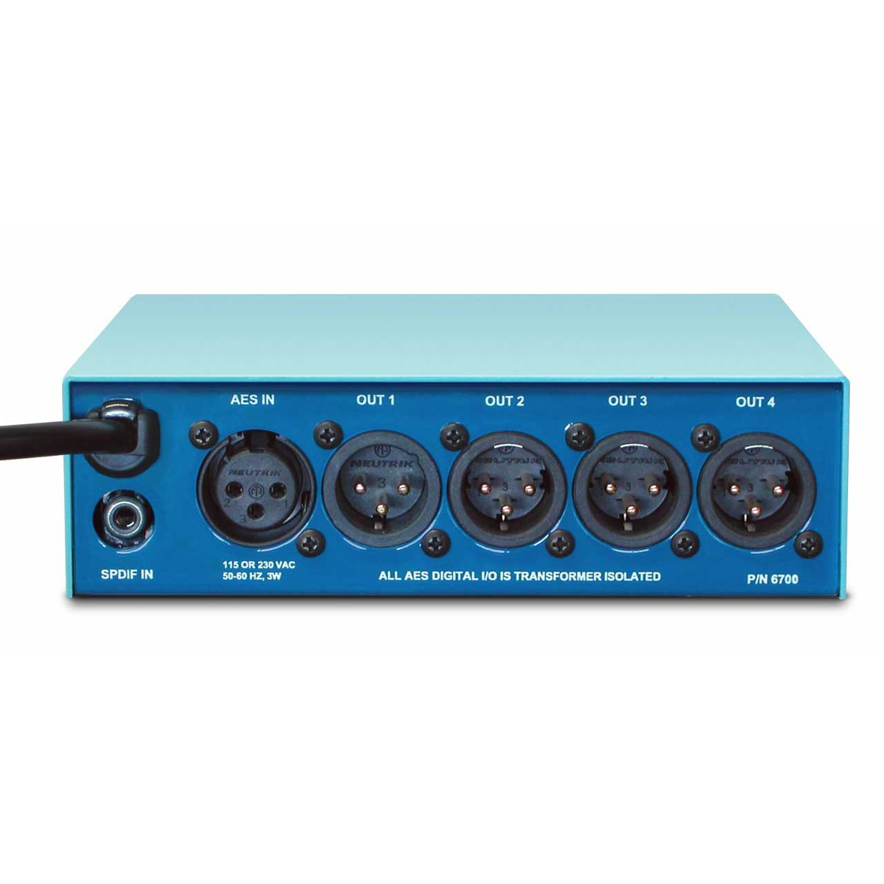 Note: To send an AES digital signal to multiple places, you must maintain accurate signal levels and impedances! No "Y cables" or splitters! The AES DA 2X4 does it, without adding any delay or latency. Quick XLR installation, no adjustments, no problems!