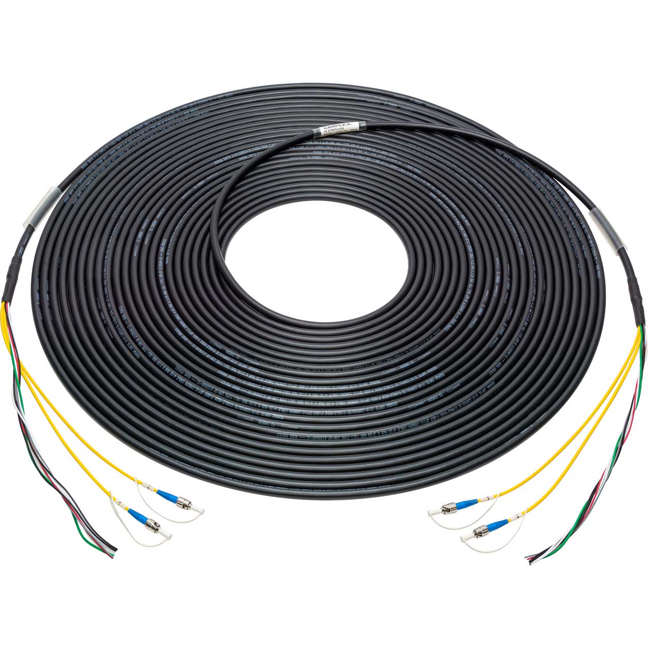 The HF-STBP4 series features dual ST fiber optic runs and blunt leads for power. Cables are designed with two single mode fibers and four 20 AWG and two 24 AWG tinned copper conductors with a tinned copper braid shield in an overall flexible PVC jacket. Designed for use with HDTV signals, the camera cable is compliant with ARIB and SMPTE standards.